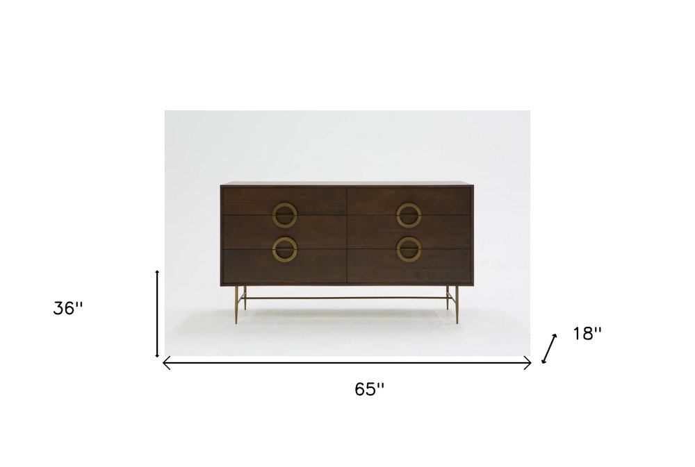 65" Acacia Solid Wood Six Drawer Double Dresser