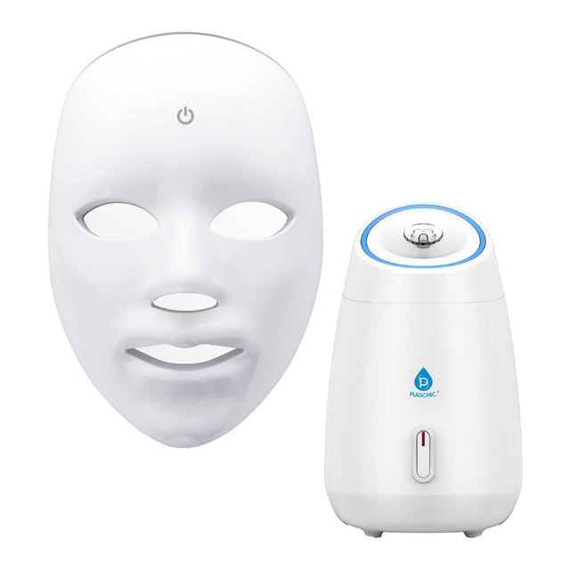 7-in-1 LED Light Therapy Face Mask & Pursonic Facial Steamer Hot Mist Moisturizing Spa Bundle by Pursonic