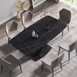 70.87" Modern Artificial Stone Black Curved Black Metal Leg Dining Table, Can Accommodate 6-8 People - Black