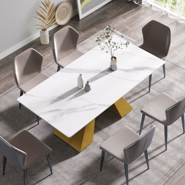 70.87" Modern Artificial Stone White Straight Edge Metal Leg Dining Table - White / Gold by Couch.com