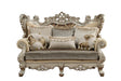 72" Cream And Platinum Damask Chesterfield Loveseat and Toss Pillows