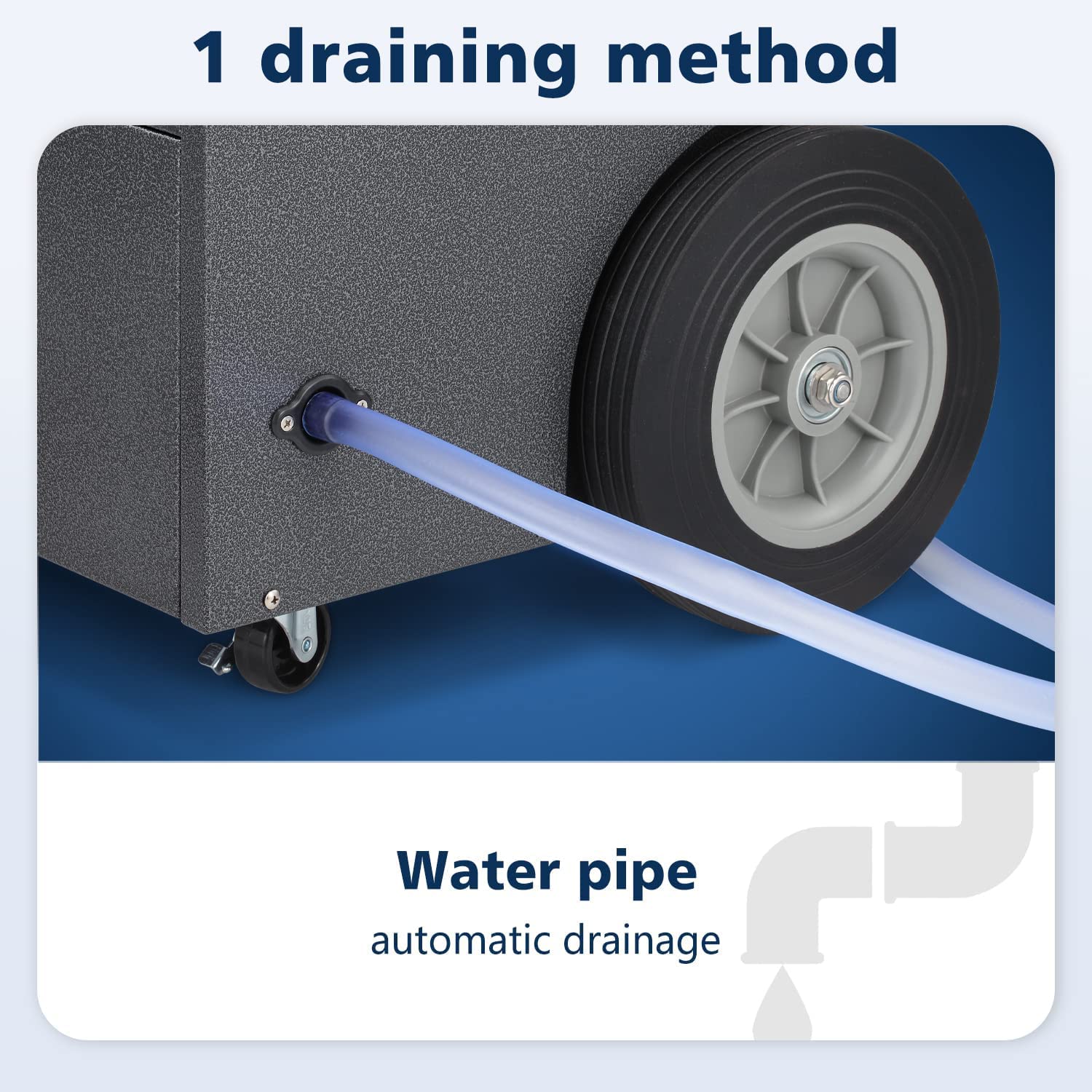 - The included 8.2ft drain hose and 1.3-gallon water tank provide 2 ways to drain water, with automatic shutoff when the tank is full.