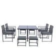 9 Pieces Patio Dining Sets Outdoor Space Saving Rattan Chairs With Glass Table Top Wicker And Cushion - Dark Gray