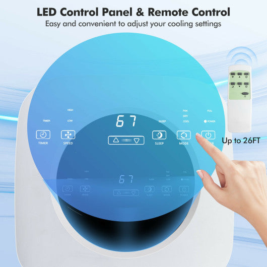 —� Powerful AC Unit: This portable air cooler features a high cooling capacity of 9000BTU and 210CFM airflow to ensure fast cooling on hot days. The oscillating angle can be adjusted up and down left and right to cover a 350 sq.ft cooling area. Under drying mode its dehumidifying efficiency reaches 55 pints/day.