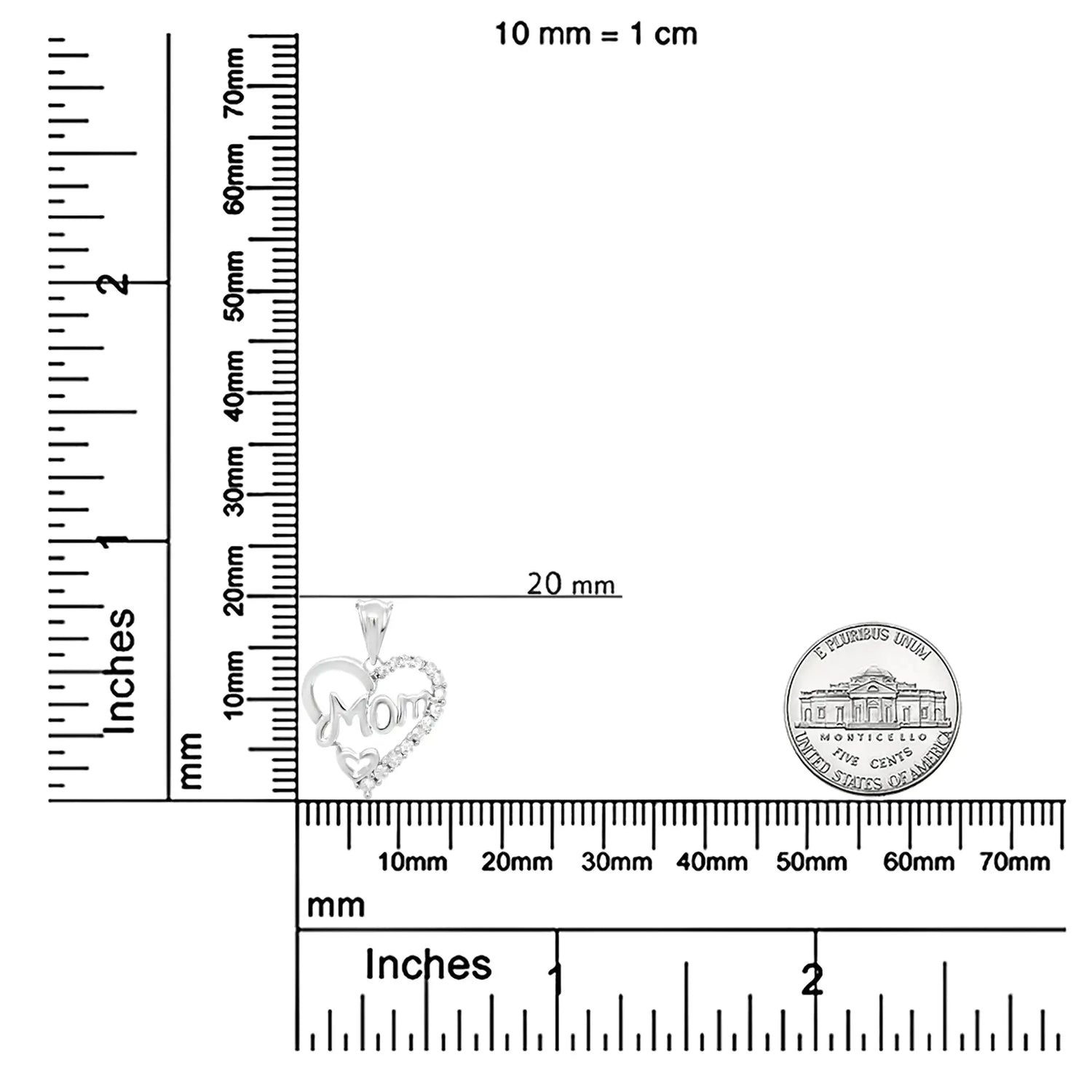 .925 Sterling Silver 1/4 Cttw Round Diamond "Mom" Openwork Heart Pendant 18" Necklace (I-J Color, I2-I3 Clarity)