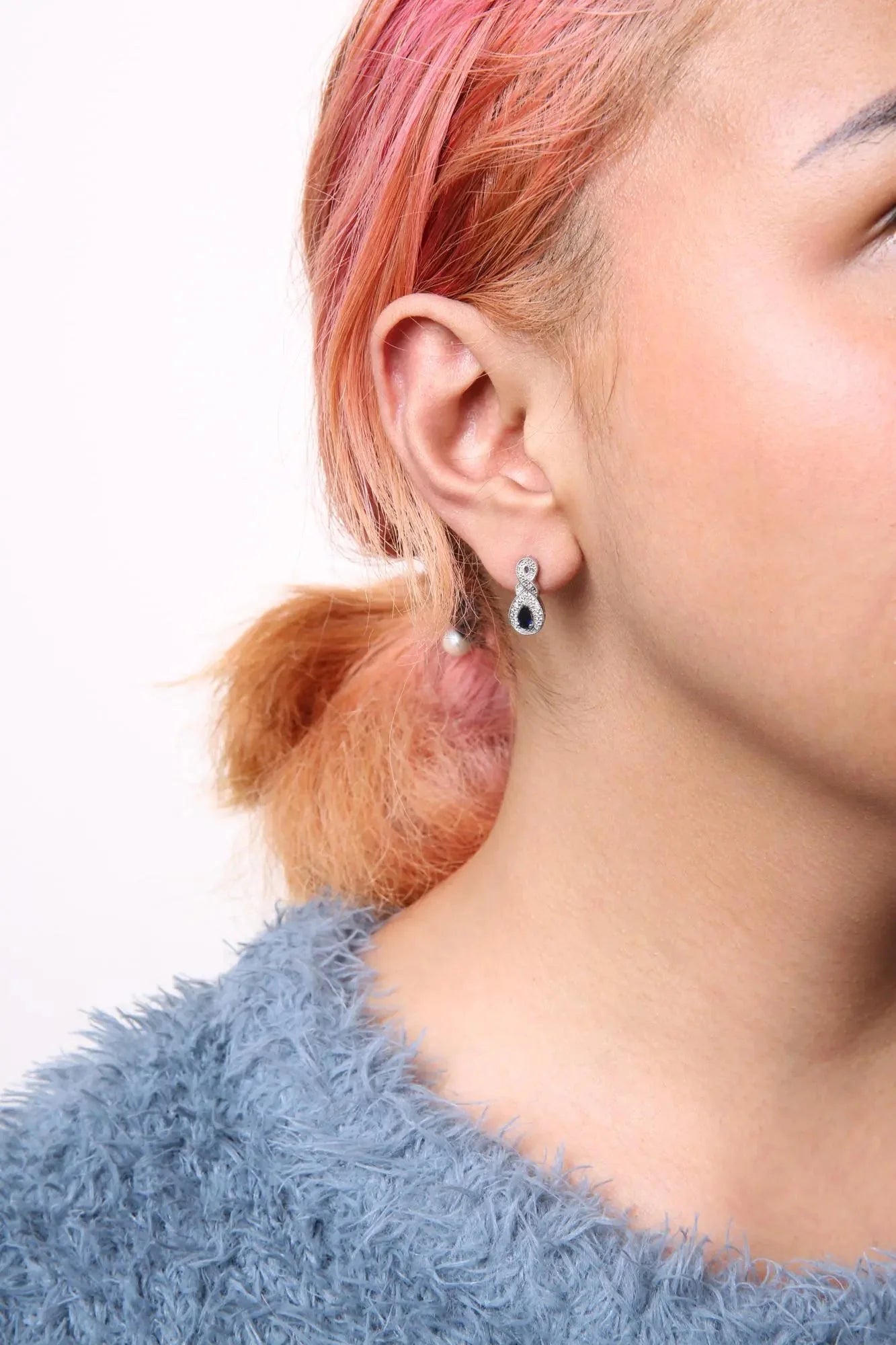 .925 Sterling Silver 4.5 x 3mm Pear Sapphire Gemstone and Diamond Accent Infinity Drop Stud Earrings (H-I Color, SI1-SI2 Clarity) is backordered and will ship as soon as it is back in stock.