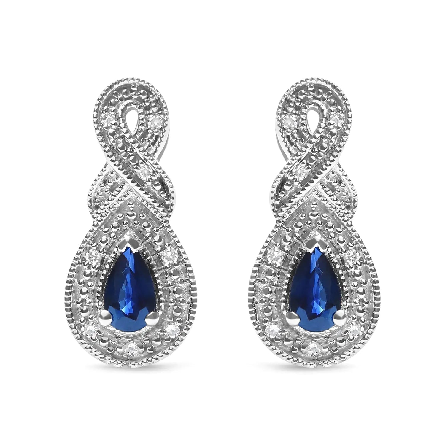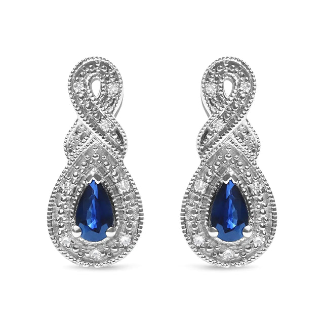 .925 Sterling Silver 4.5 x 3mm Pear Sapphire Gemstone and Diamond Accent Infinity Drop Stud Earrings (H-I Color, SI1-SI2 Clarity)