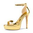Aachcol Womens Platform Sandals Peep Open Toe Stiletto High Heels Ankle Strap Buckle Sexy Dress Shoes 5.1 Inches Heels Gold Patent 8.5 M US