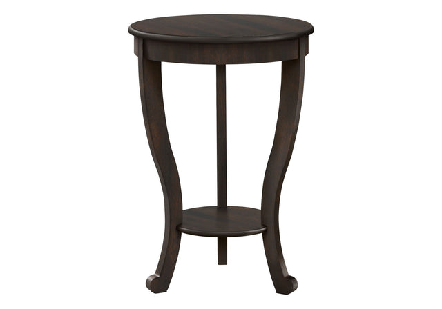 - Elegant Design: This round accent table features a fashionable and classic design with a dark walnut brown veneer finish, adding a touch of elegance to any room.