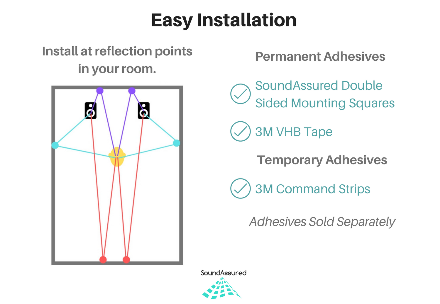 Acoustic diffusers are placed at the reflection points in your room.