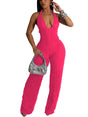 Adogirl Summer Sexy Halter Jumpsuits for Women Chiffon Sleeveless V Neck Tie Knot Pleated Boho One Piece Wide Leg Long Pants Jumpsuit Romper Ruched Party Outfit rose red S