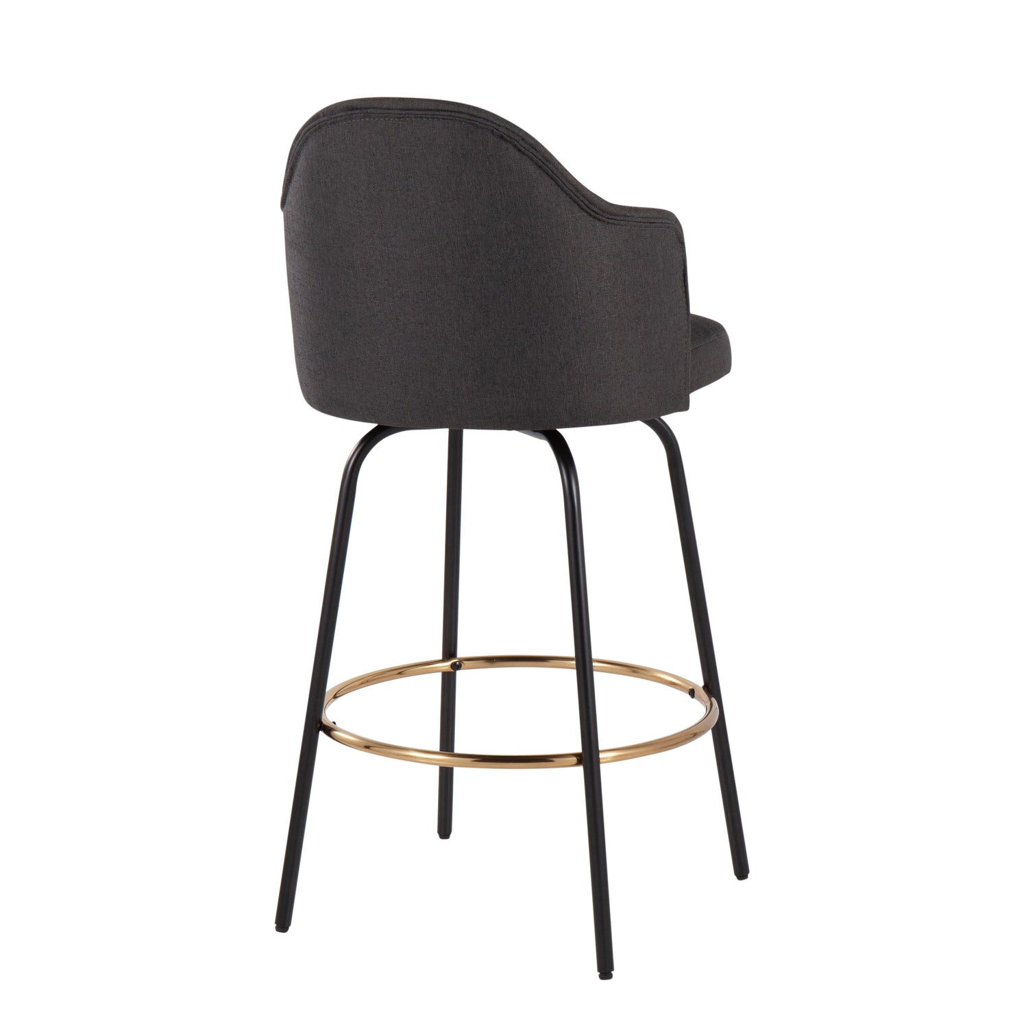Ahoy - Contemporary Fixed Height Counter Stool Round Gold Footrest (Set of 2) - Charcoal / Black