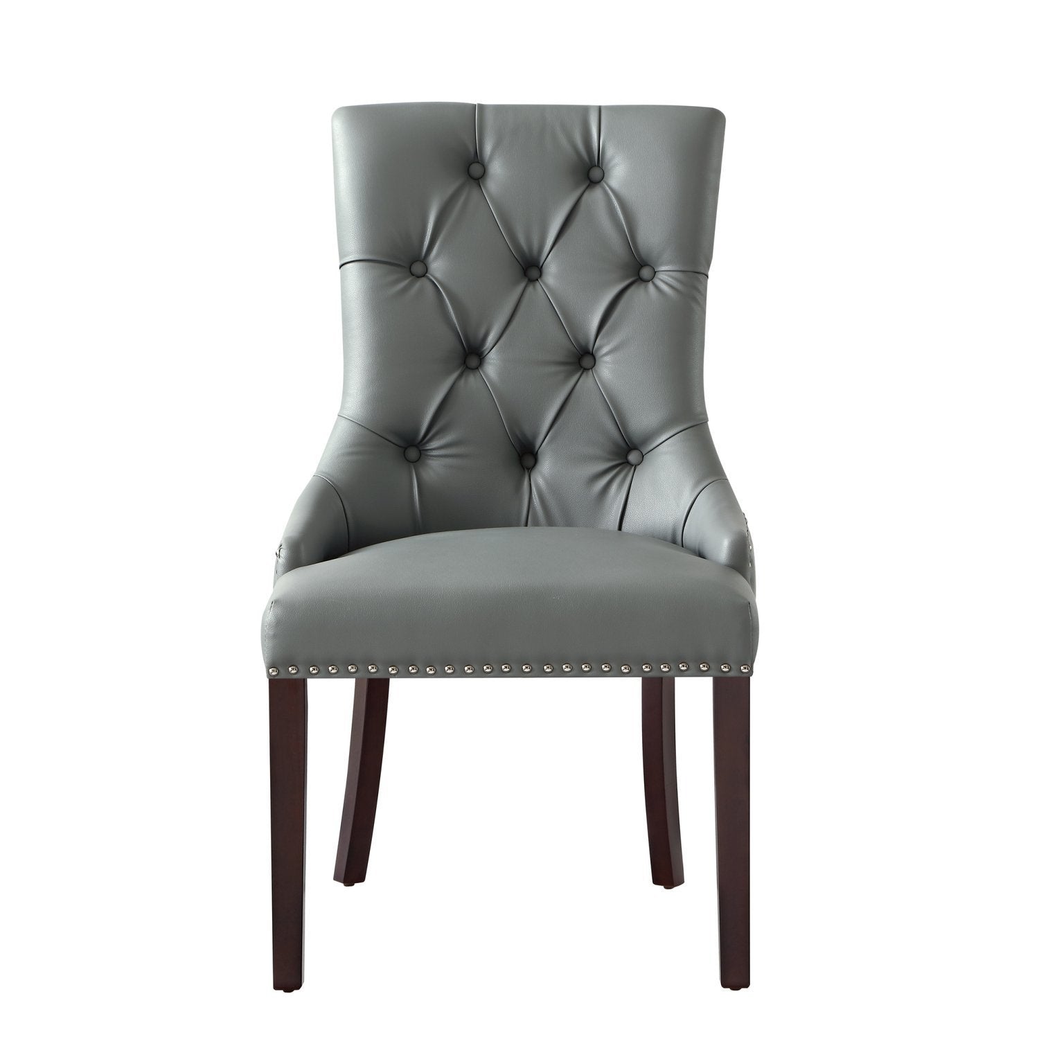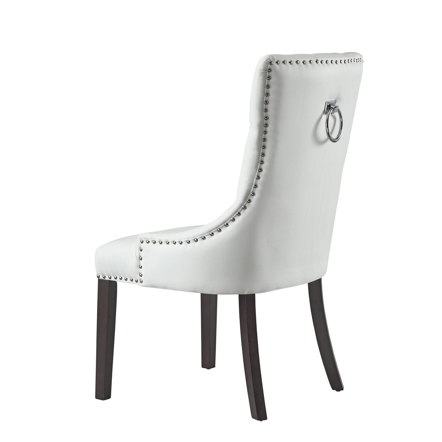 - SET OF 2 - Sold as a set of 2 matching chairs. Pair it with any dining table to add a luxurious and elegant look. Designed to dress up any dining space, this set of two chairs features leather PU upholstery in a choice of color.