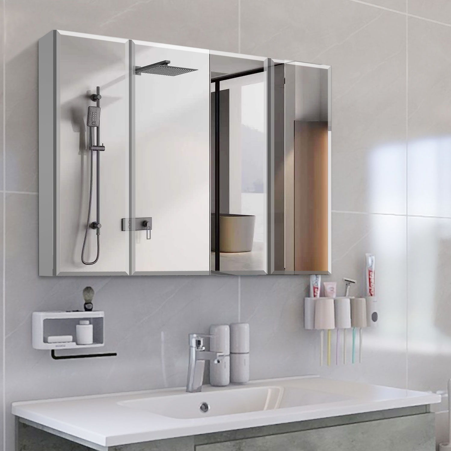 Aluminum Bathroom Medicine Cabinet Adjustable Glass Shelves Waterproof And Rust Resist Recess Or Surface Mount Installation - Silver