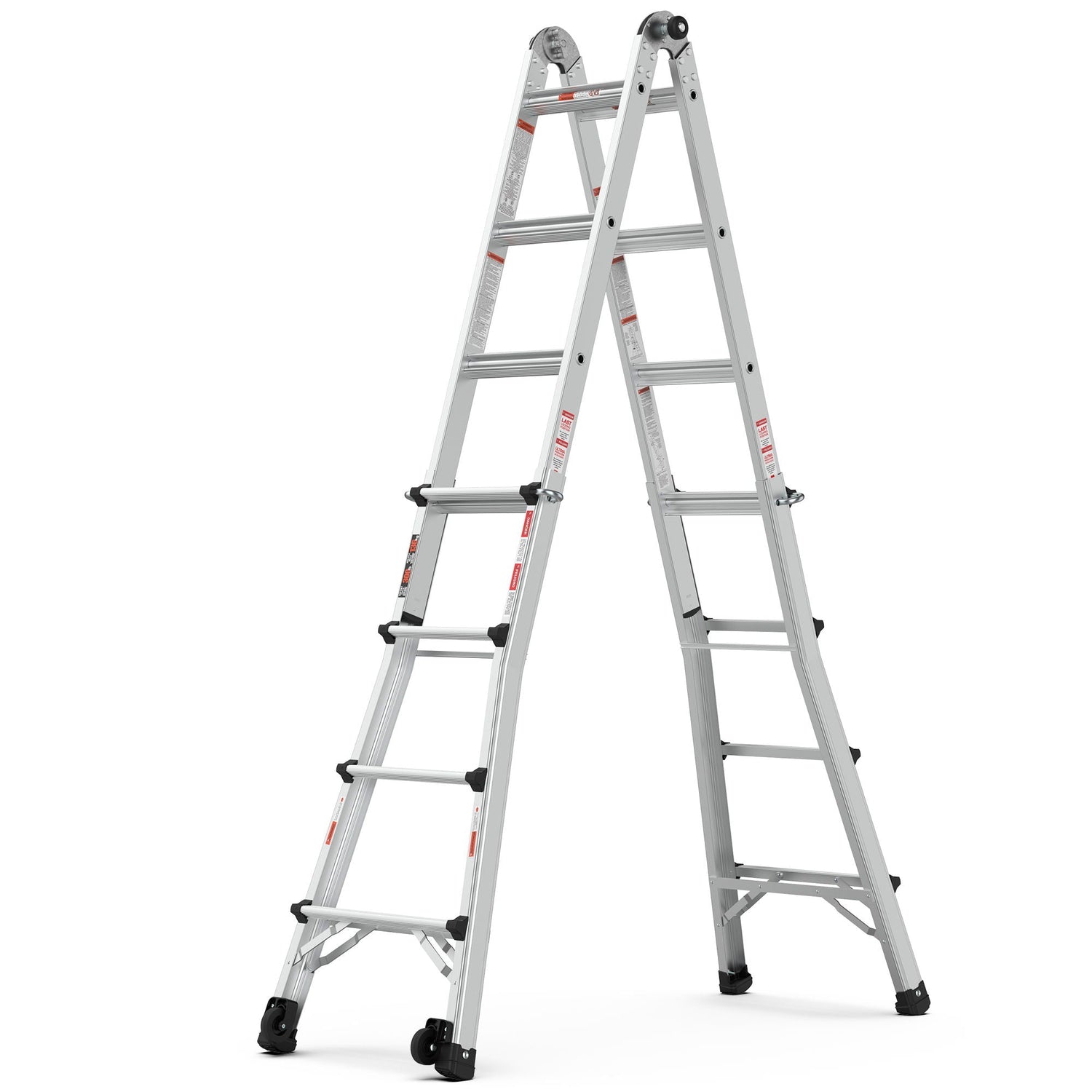 Aluminum Multi-Position Ladder With Wheels, 300 Lbs Weight Rating - Metallic Gray