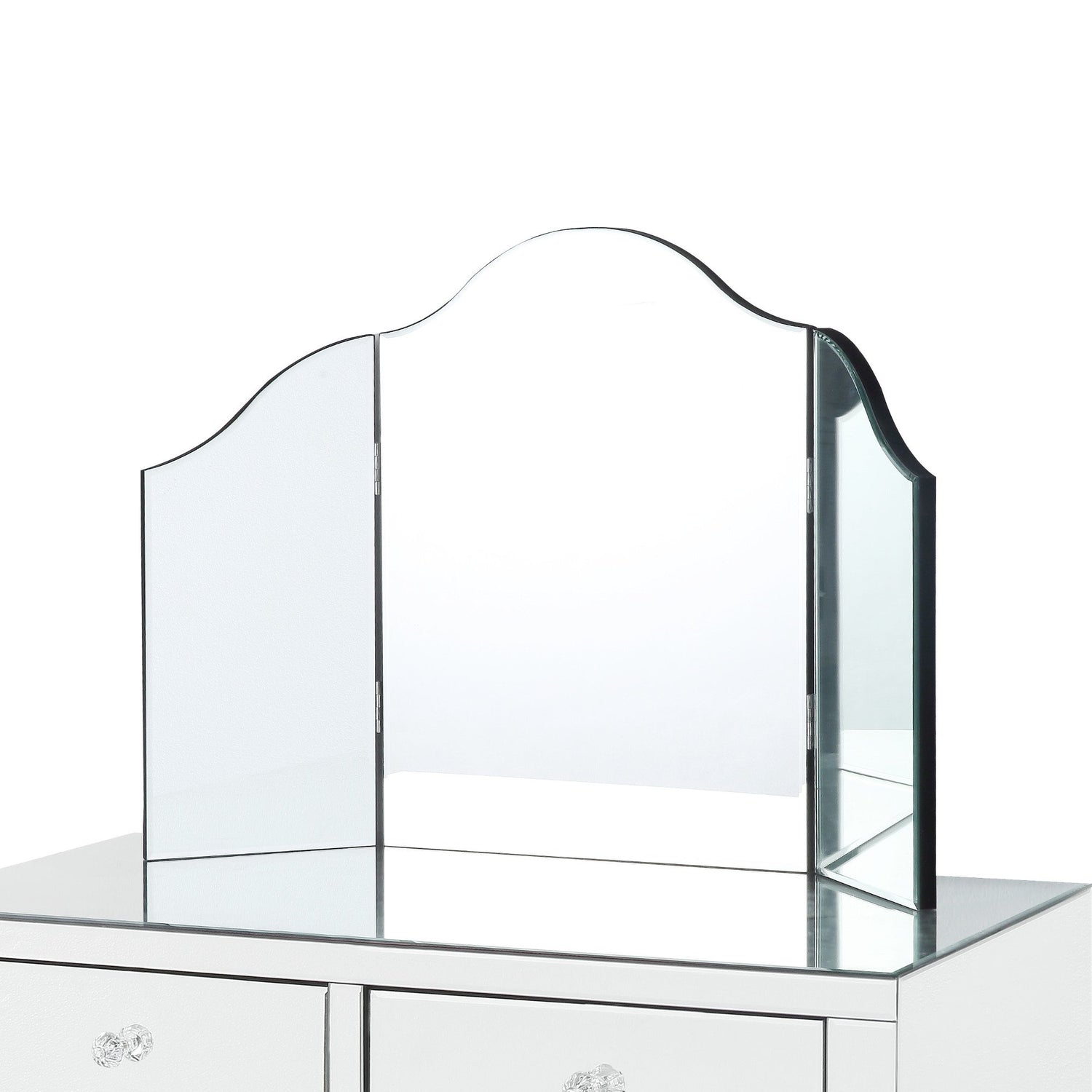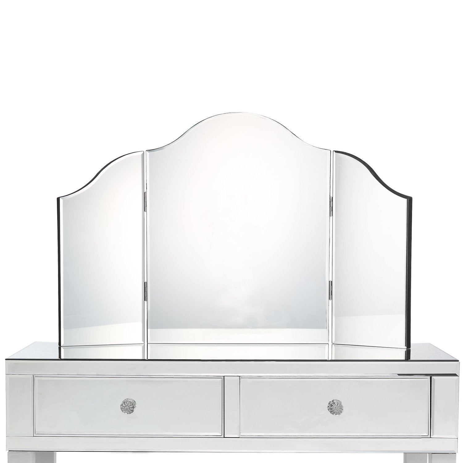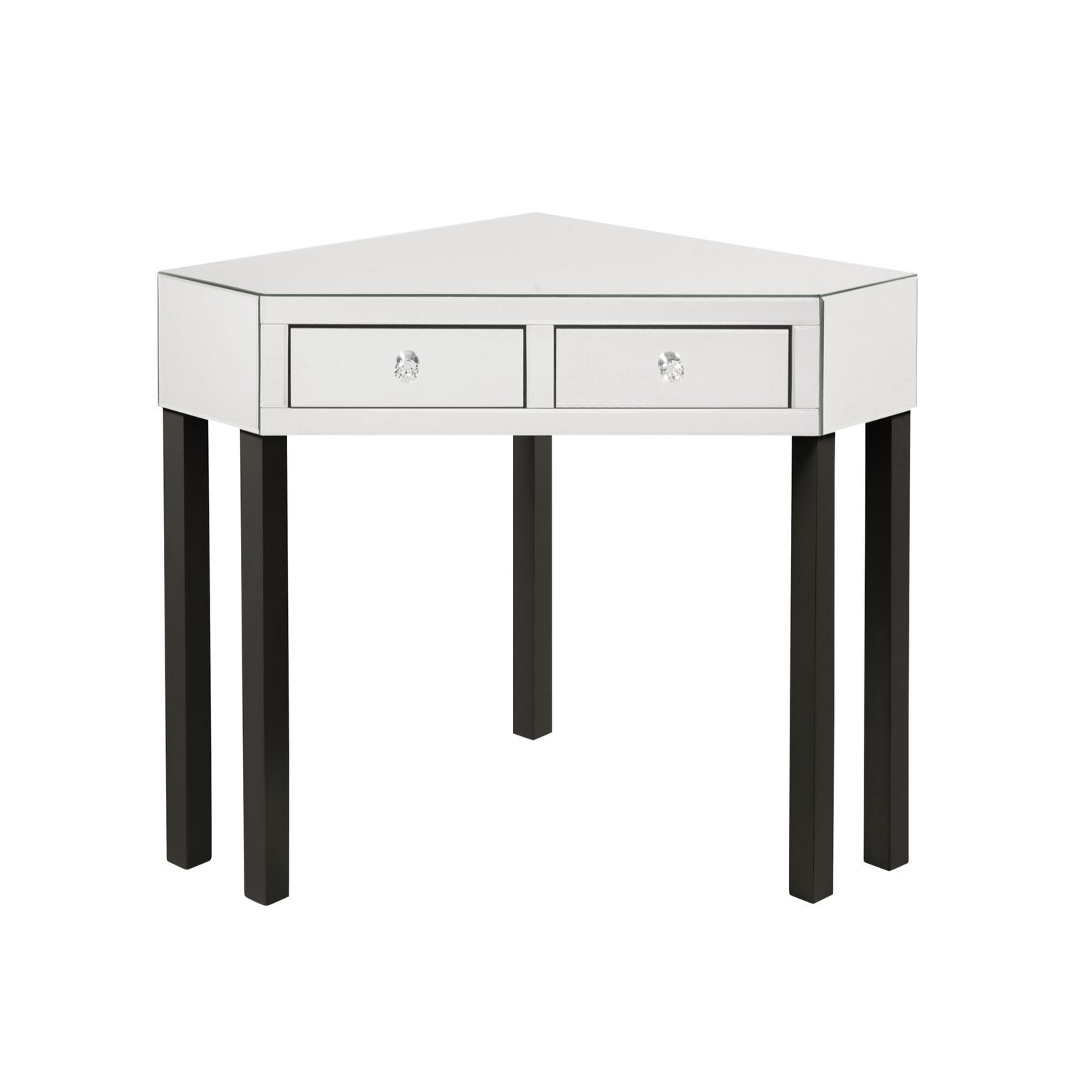 - ELEGANT DESIGN - Our trendy corner vanity set adds Hollywood glamorous glow to any room. The mirrored finish will catch the light beautifully and create a sparkly look in your bedroom, living room, makeup room.
