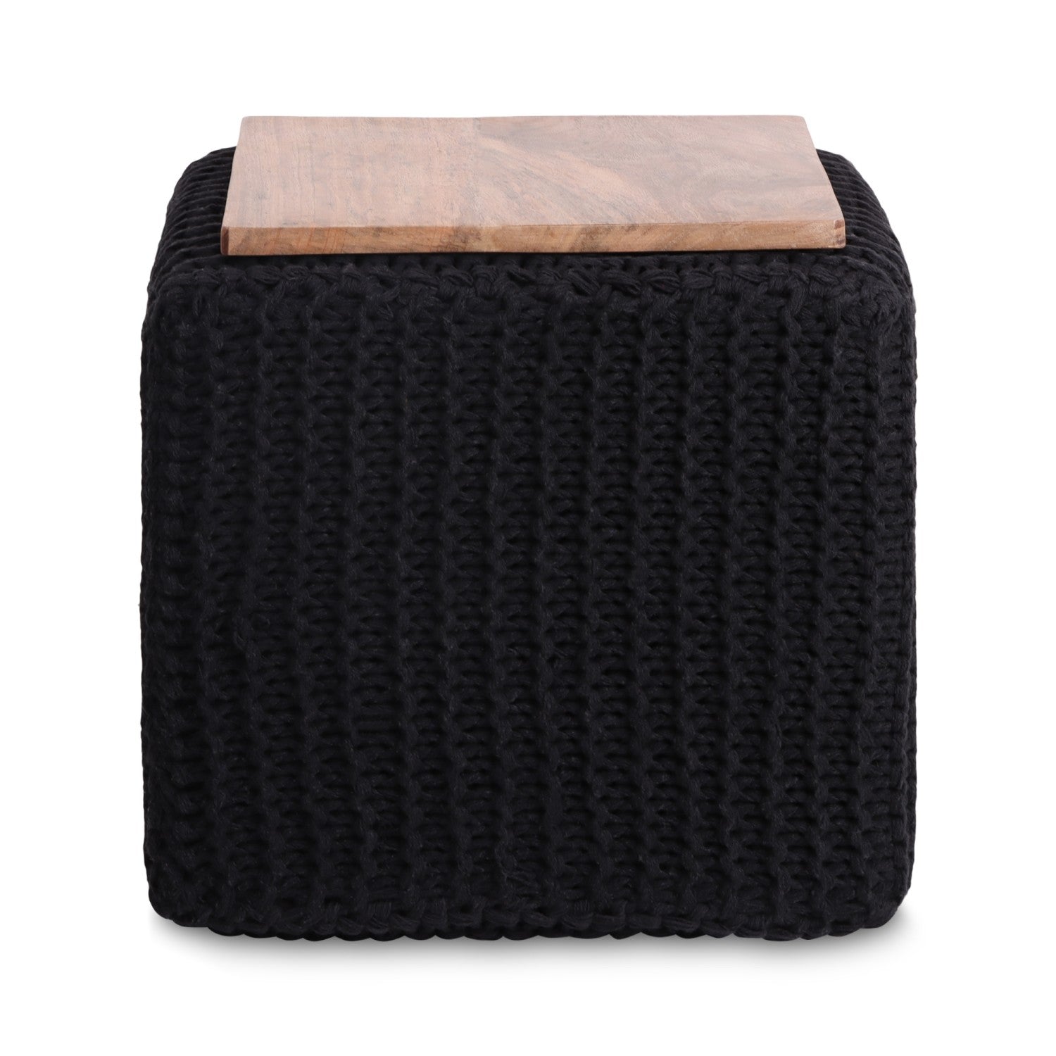 Amayah Pouf with Wooden Tray - Black is backordered and will ship as soon as it is back in stock.