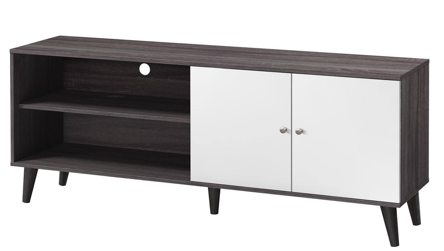 Amidon - TV Stand For Tvs Up To 63", With 2 Storage Shelves & 1 Cabinet, Modern Entertainment Centre For TV In Living Room - Dark Gray / White