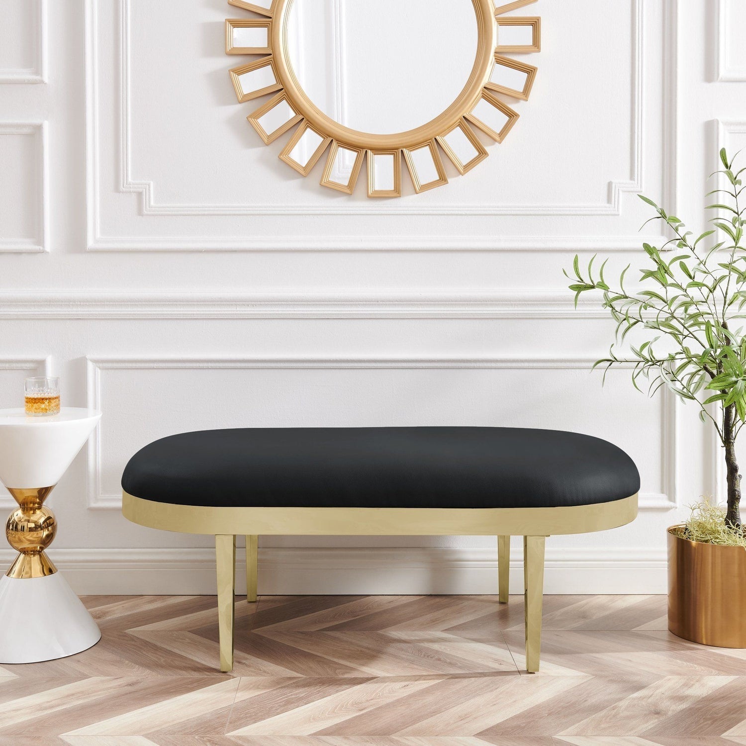 - SUPERIOR CONSTRUCTION – Luxurious upholstered bench features a sleek polished meatal base and high density foam to increase durability and resilience.