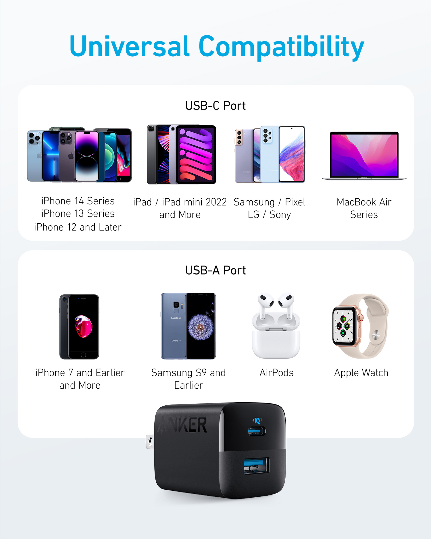 2-in-1: With both a USB-C port and a USB-A port, you can now charge up to 2 devices simultaneously.