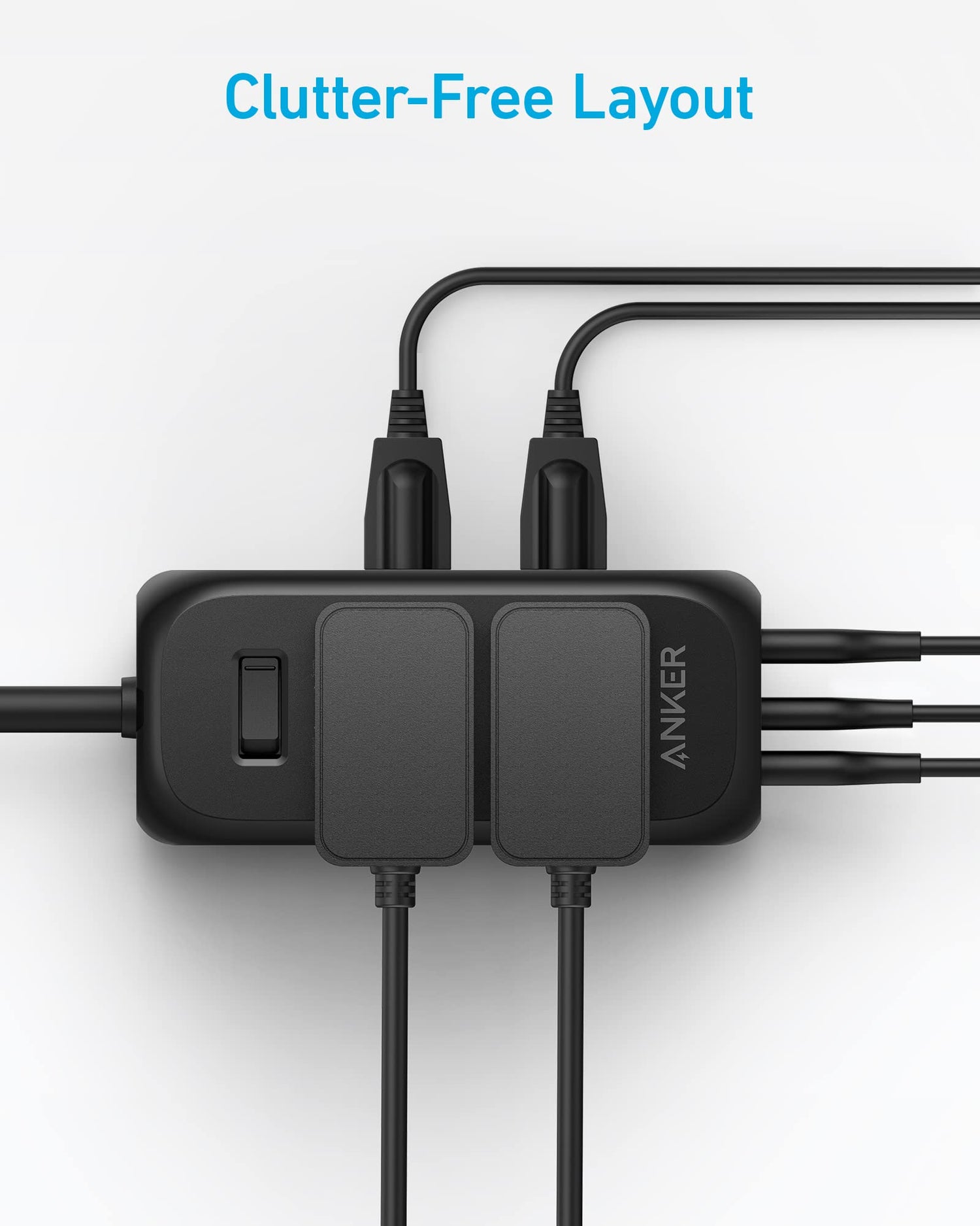 - Space-Saving Design: Takes up less space on your desk thanks to a compact design with outlets located on three sides.