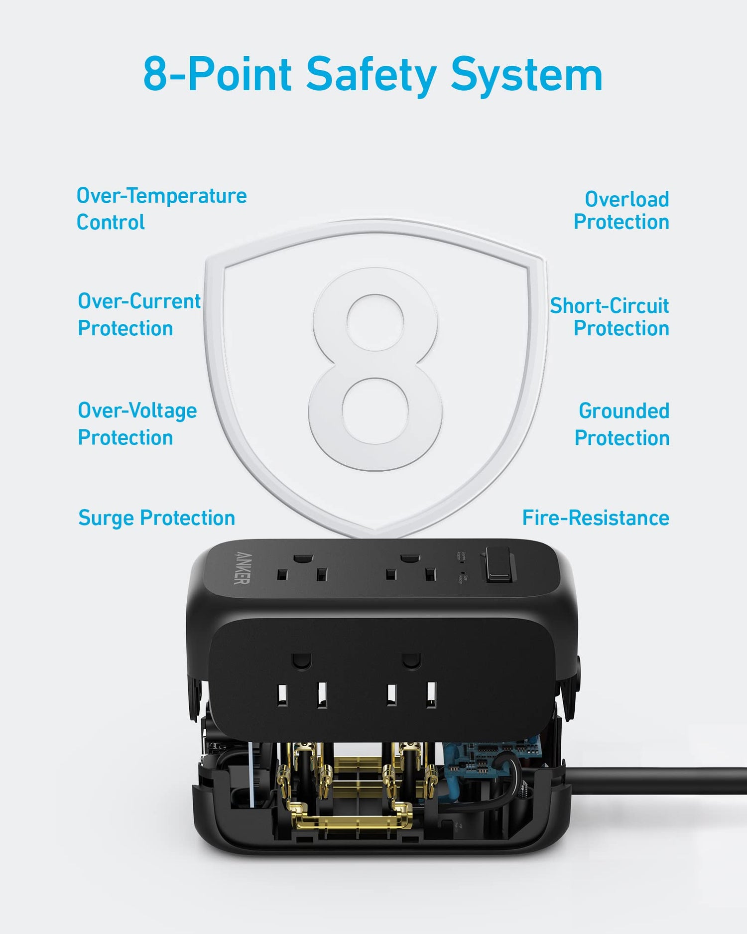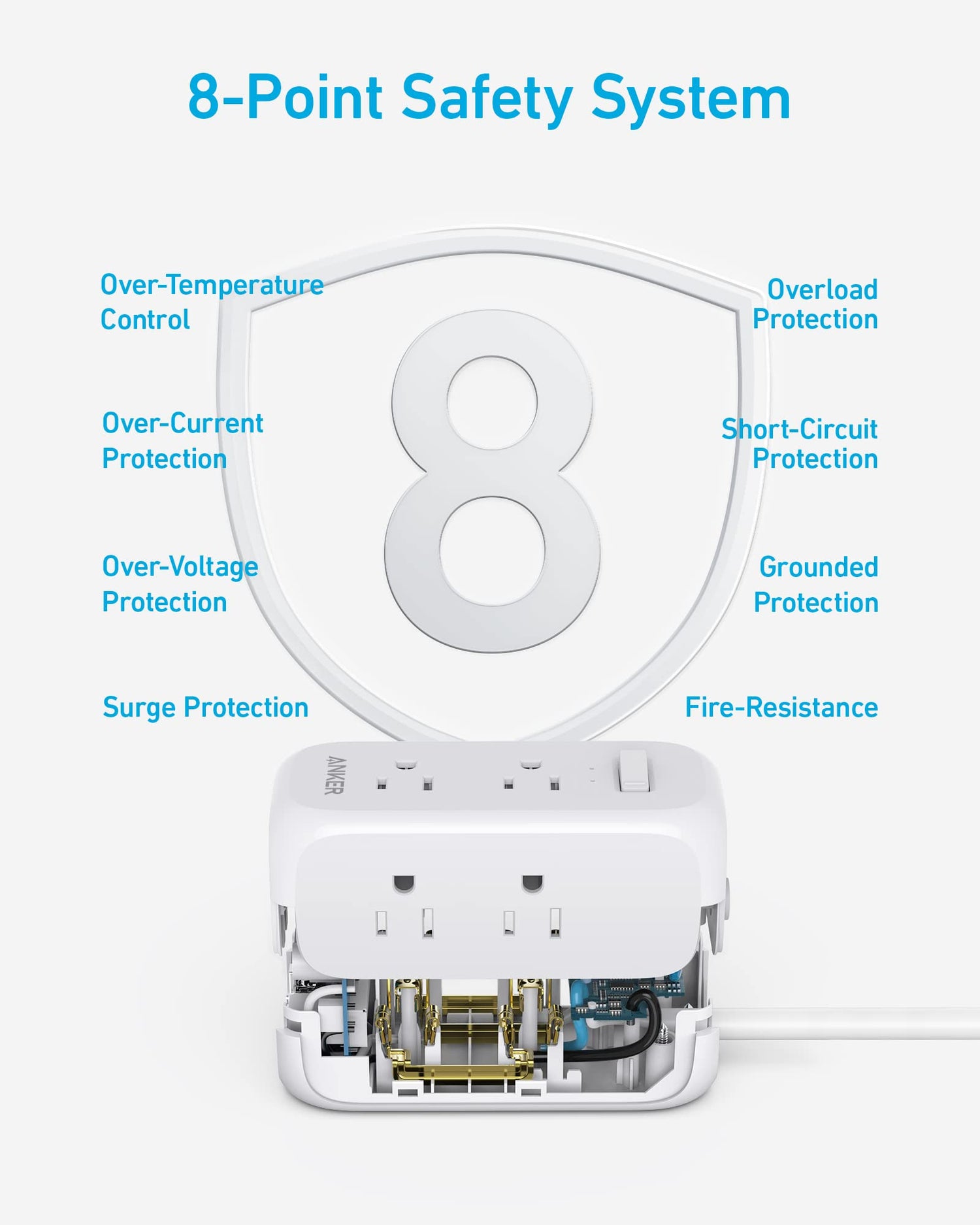 - 8-Point Safety System: Features fire-resistance, overload protection, surge protection, over-temperature protection, and more to deliver safe power to your connected devices.