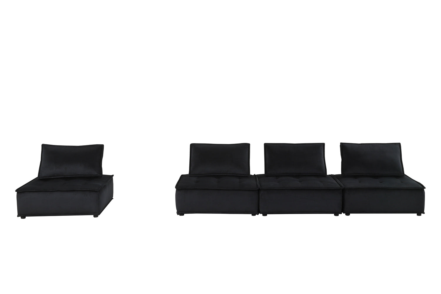 Couch.com Anna Velvet 4 Piece Modular Sofa Black, Modern Style, Fabric Construction, Black Finish
