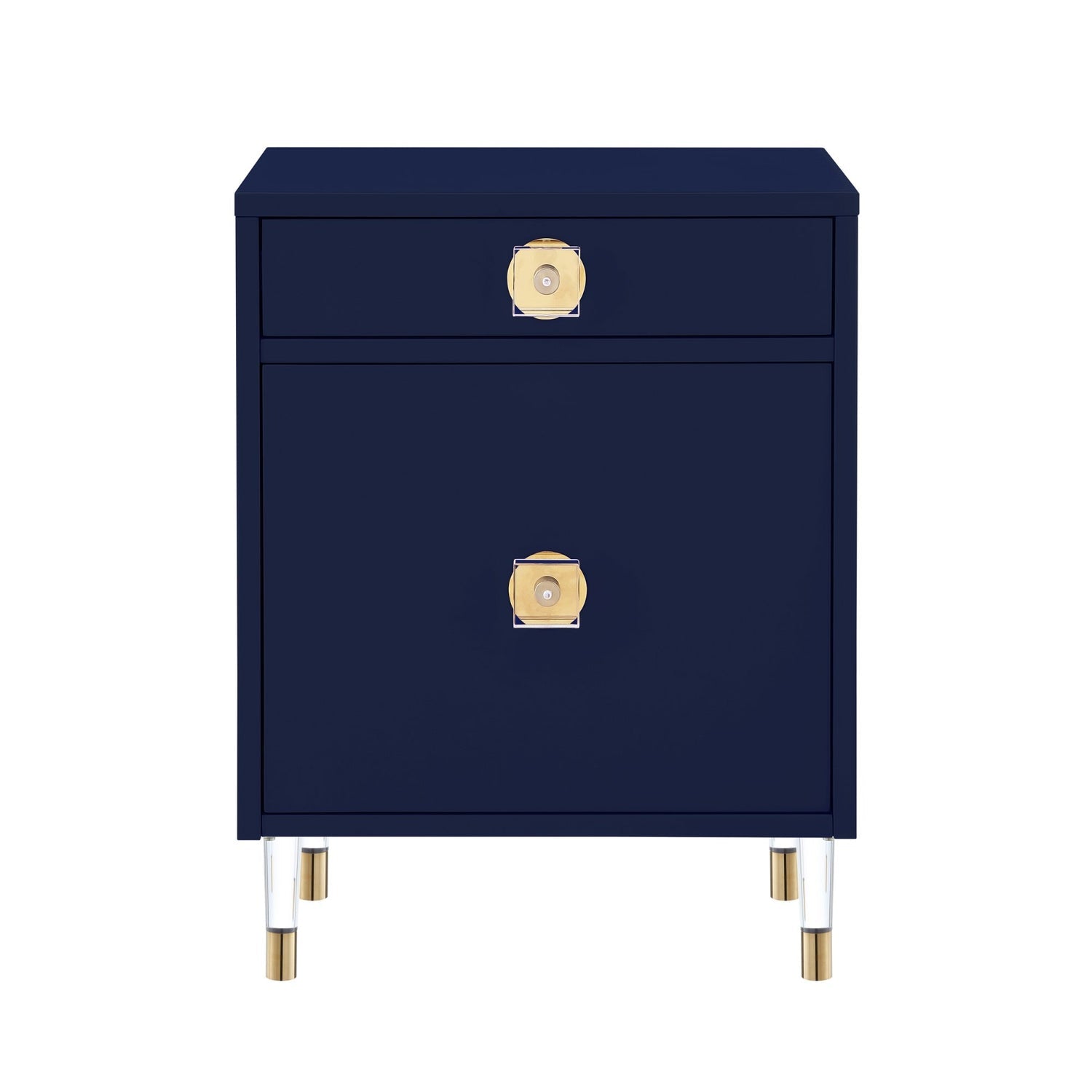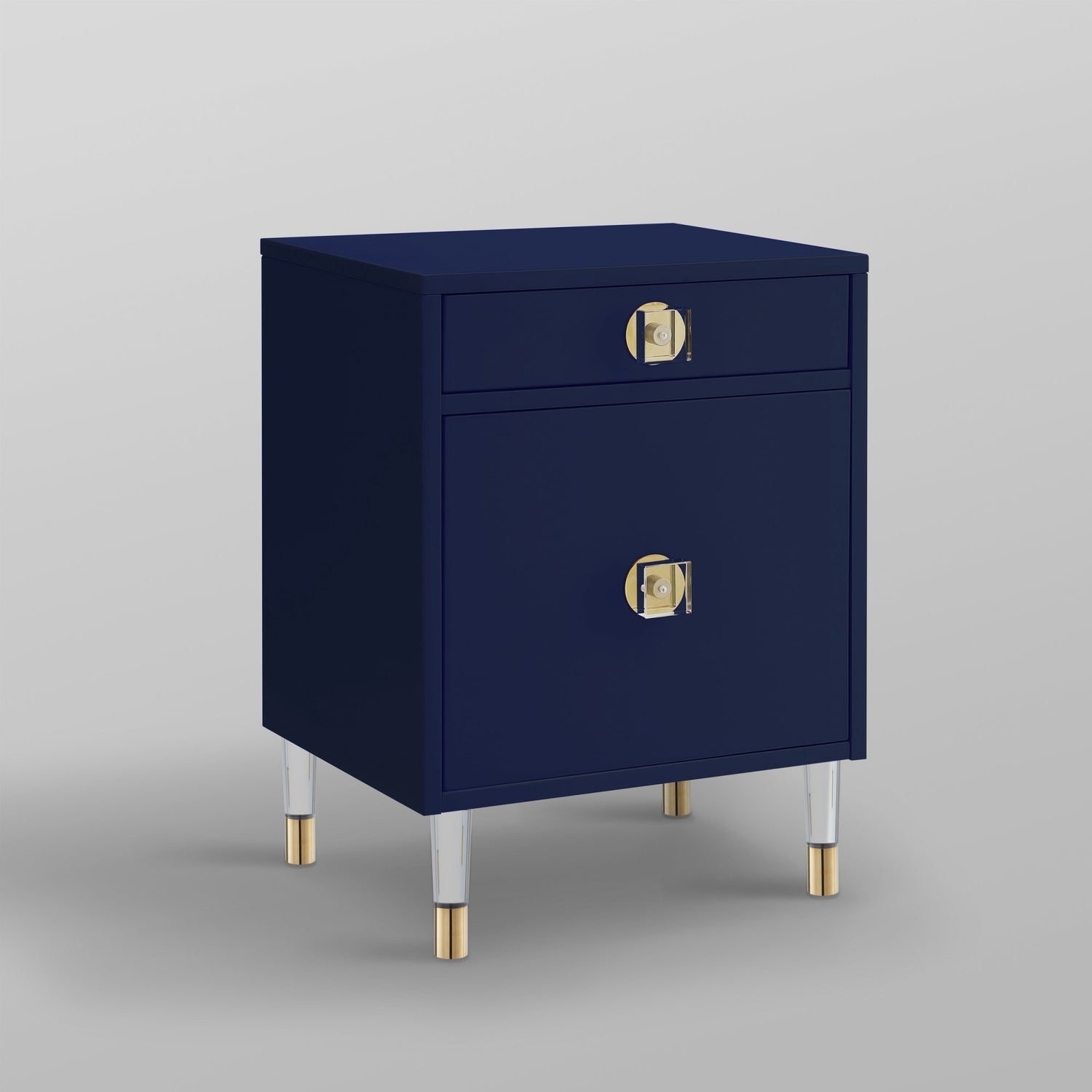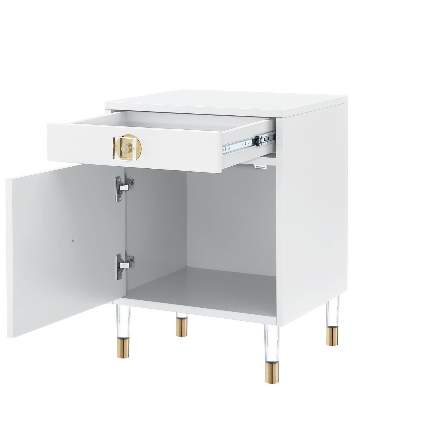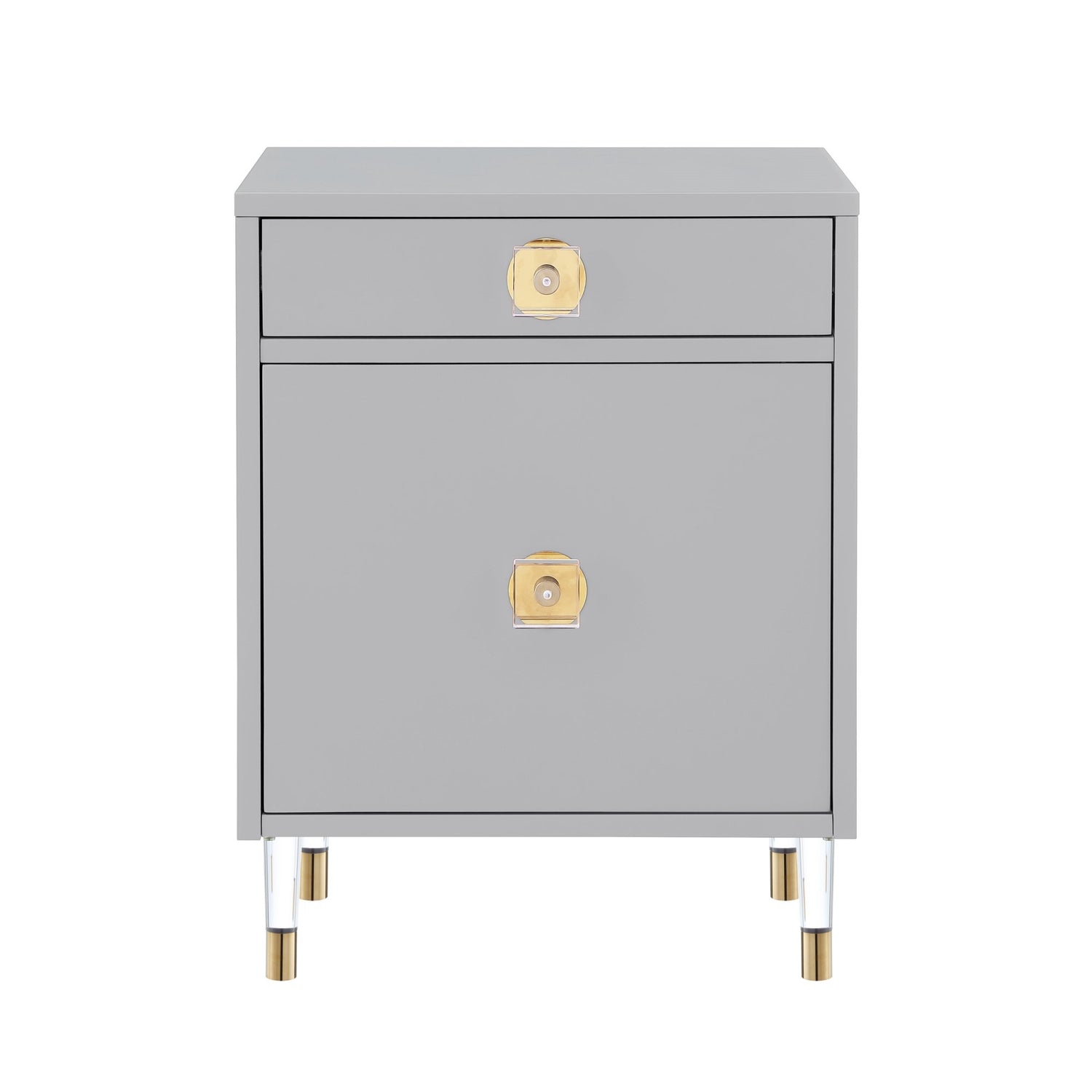 - MODERN GLAM - Modern high gloss finish, acrylic tapered legs with gold metal tips and matching acrylic knob will make a statement in any room