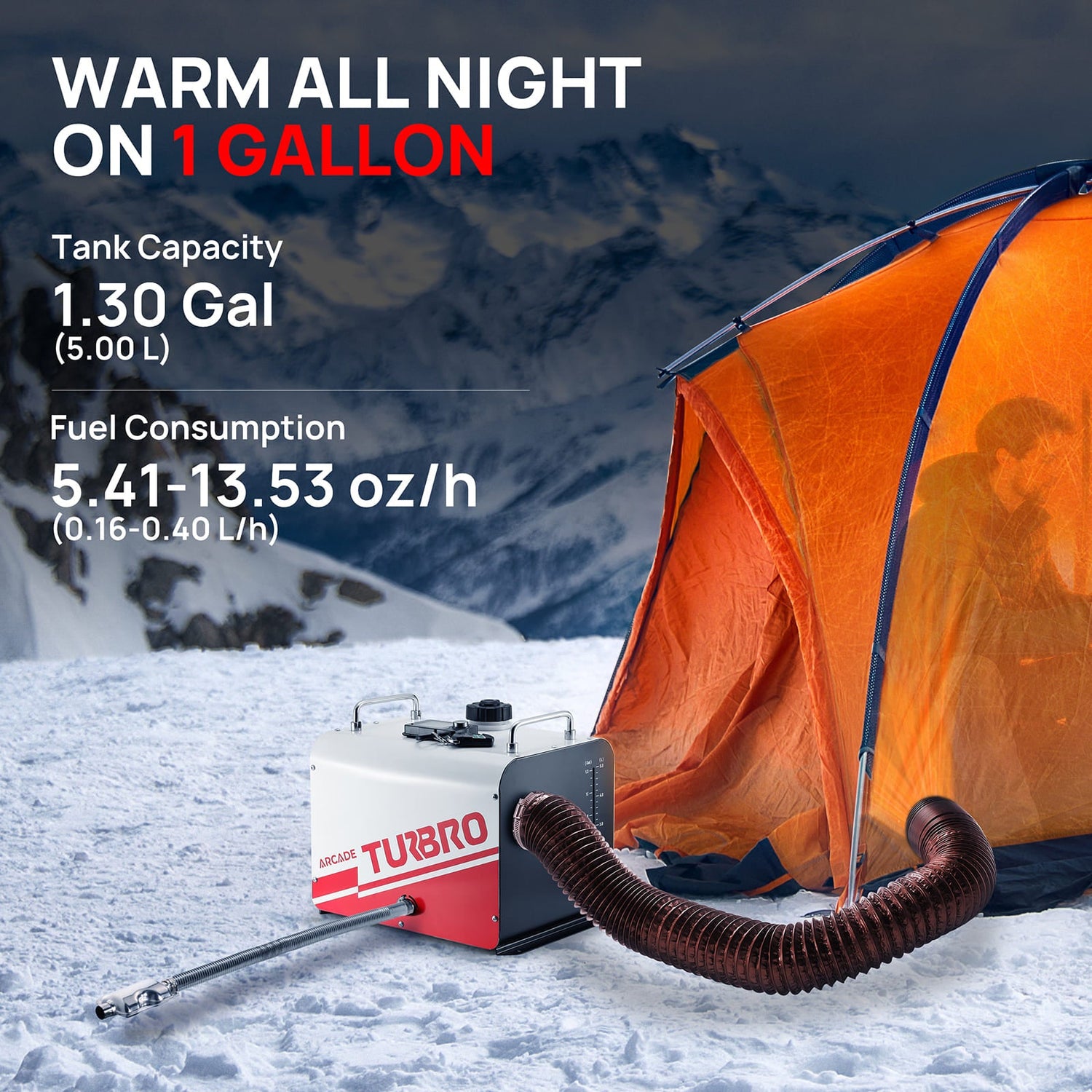 - High Fuel Efficiency: Pulse fuel pump precisely meters delivery for improved efficiency; low consumption range of 0.16–0.4 L/h extends running time; single refuel provides 12.5–31.25 hours of warmth; keeps you warm all night long without refueling