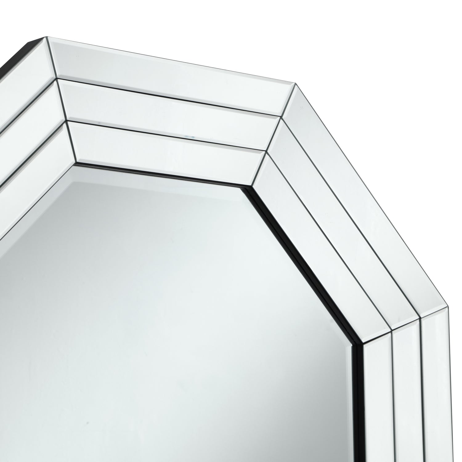 - GLAM DESIGN – This gorgeous modern luxe octagon wall mirror with outer reflective 3 rows of mirror tiles in beveled finish creates a complete and unique accessory that brings elegance to any room and brightens up wall space.