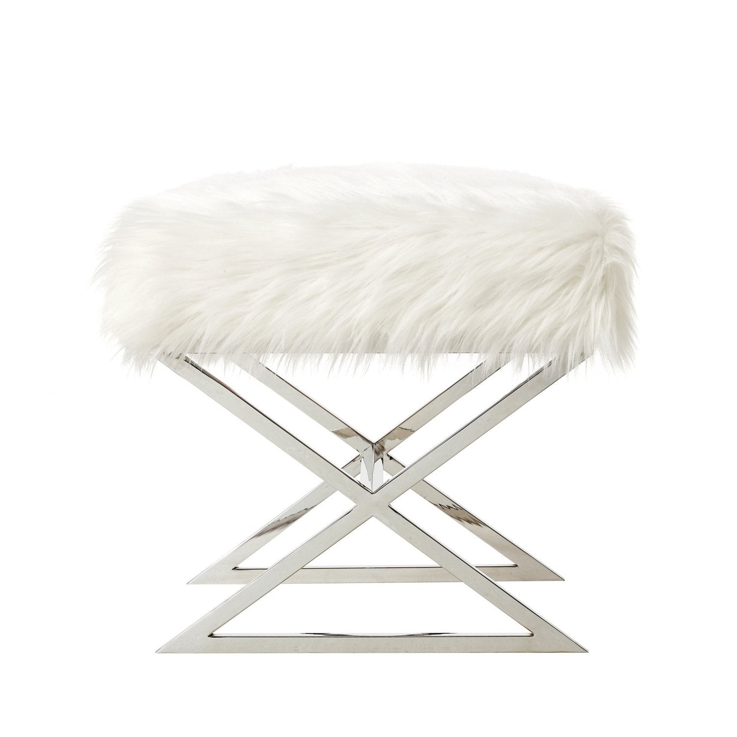 Aurora Faux Fur X-Leg Ottoman