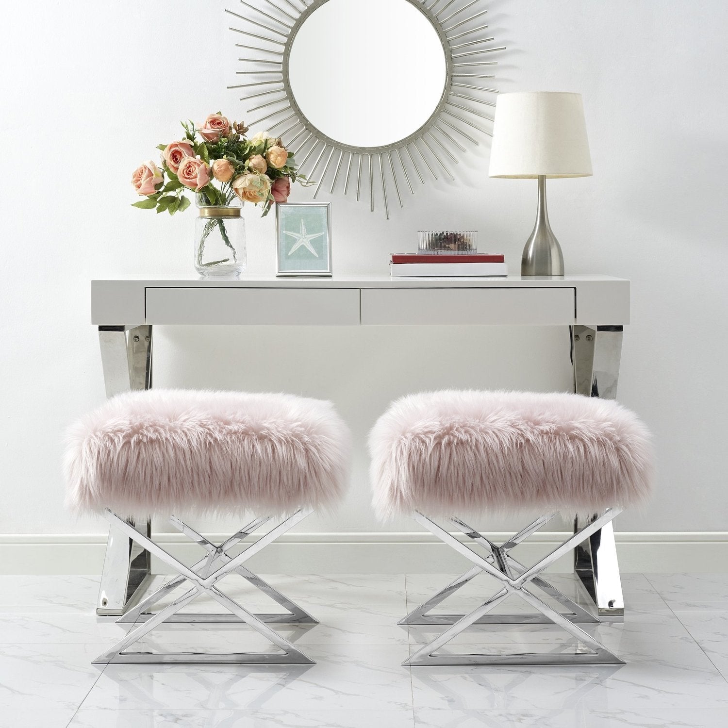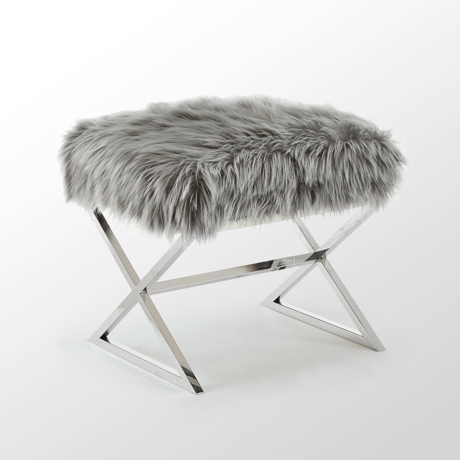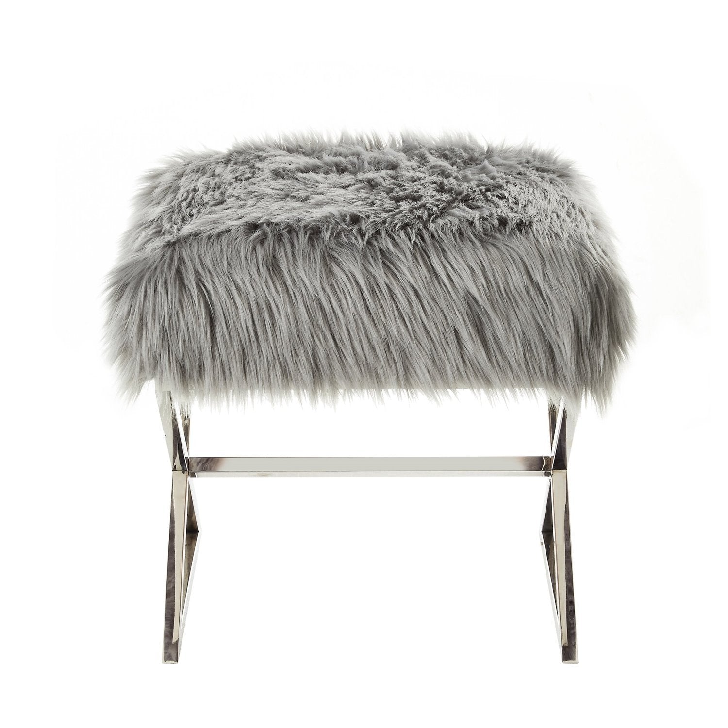 - ELEGANT DESIGN - Featuring faux fur upholstery and stainless steel metal legs, this glamorous style ottoman w/ modern appeal really makes a statement and brings luxurious and sophisticated look. Sold as 1 piece