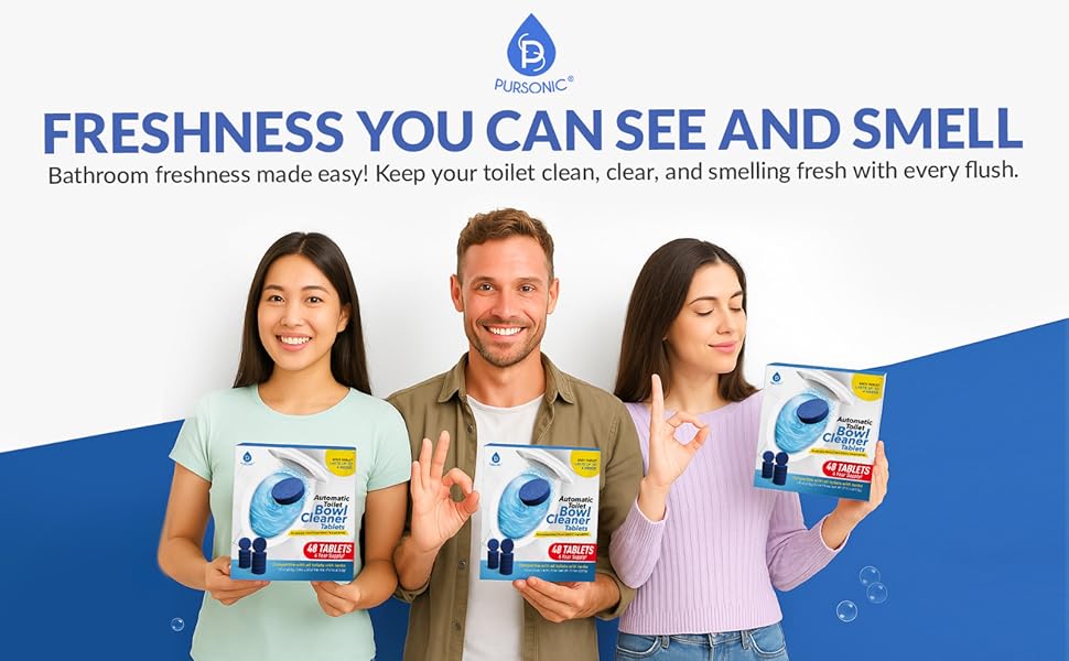 - Year-Round Supply Value Pack: Includes 48 Pursonic automatic toilet cleaner tablets to help maintain a hygienic bathroom all year. Just drop a capsule into the toilet tank, let it dissolve, and enjoy hassle-free maintenance with every flush.