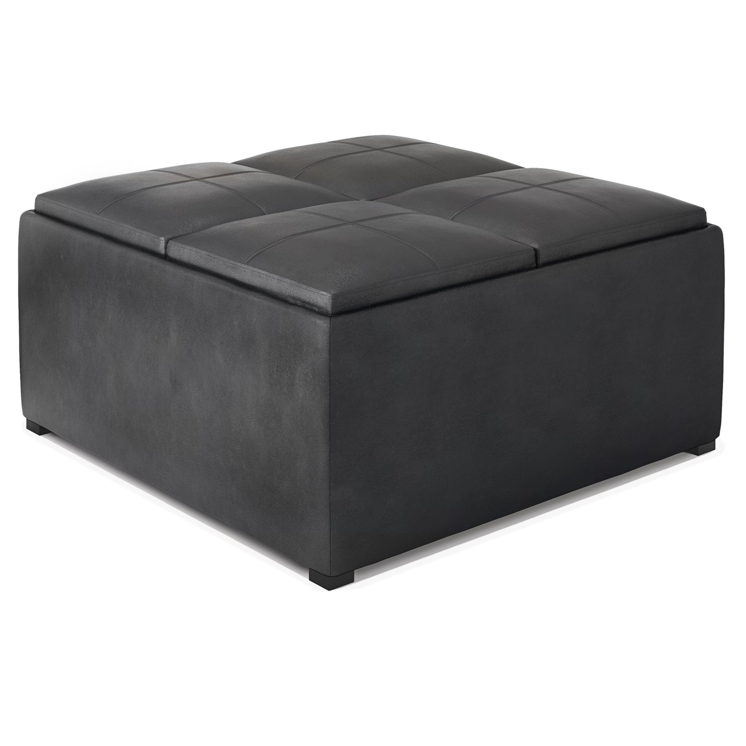 Avalon - Square Coffee Table Storage Ottoman - Distressed Black