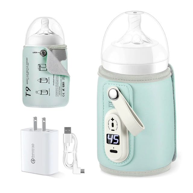 ["🍼[Temperature control choose the right temperature] : Portable bottle warmer with adjustable temperature 5 levels of milk temperature by inverter (the most suitable for babys temperature) to meet different needs - equipped with 18W fast charging so you can quickly heat and keep warm" 🍼[Bottle Warmers for most bottles] : Baby bottle warmer with removable clasp. Adjust according to the size of the bottle suitable for almost all ordinary milk bottles simple and convenient shape and practical preferably fine leathermore delicate the service life of more than 3 years 🍼[baby bottle warmer home travel essential]: Bottle warmer with USB charging cable and 18W fast charging bottle warmer support mobile power USB charging fast charging charging using fast charging power plug heating only 5-8 minutes using USB heating takes 20-30 minutes 🍼[Travel bottle warmer easy to clean] : Portable baby bottle warmer is easy to clean use a wet paper towel to gently wipe the stain on the leather cover you can complete the cleaning work milk warmer using high-quality microfiber PU material safe and environmentally friendly (it is best not to put the insulation cover directly in the water to clean) 🍼[Buy baby water warmer with confidence] : Buy portable bottle warmer you will get 1*bottle warmer; 1*18W fast charging plug; 1*type-c charging cable we support 1 month no reason to return 12 months warranty any questions please contact us]