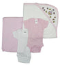 Short Sleeve Onezie Bodysuits (100% Cotton), Pink Short Sleeve Onezie (100% Cotton), Pink Receiving Blanket (100% Cotton), Terry Hooded Towel With Screen Prints (80% Cotton / 20% Polyester)