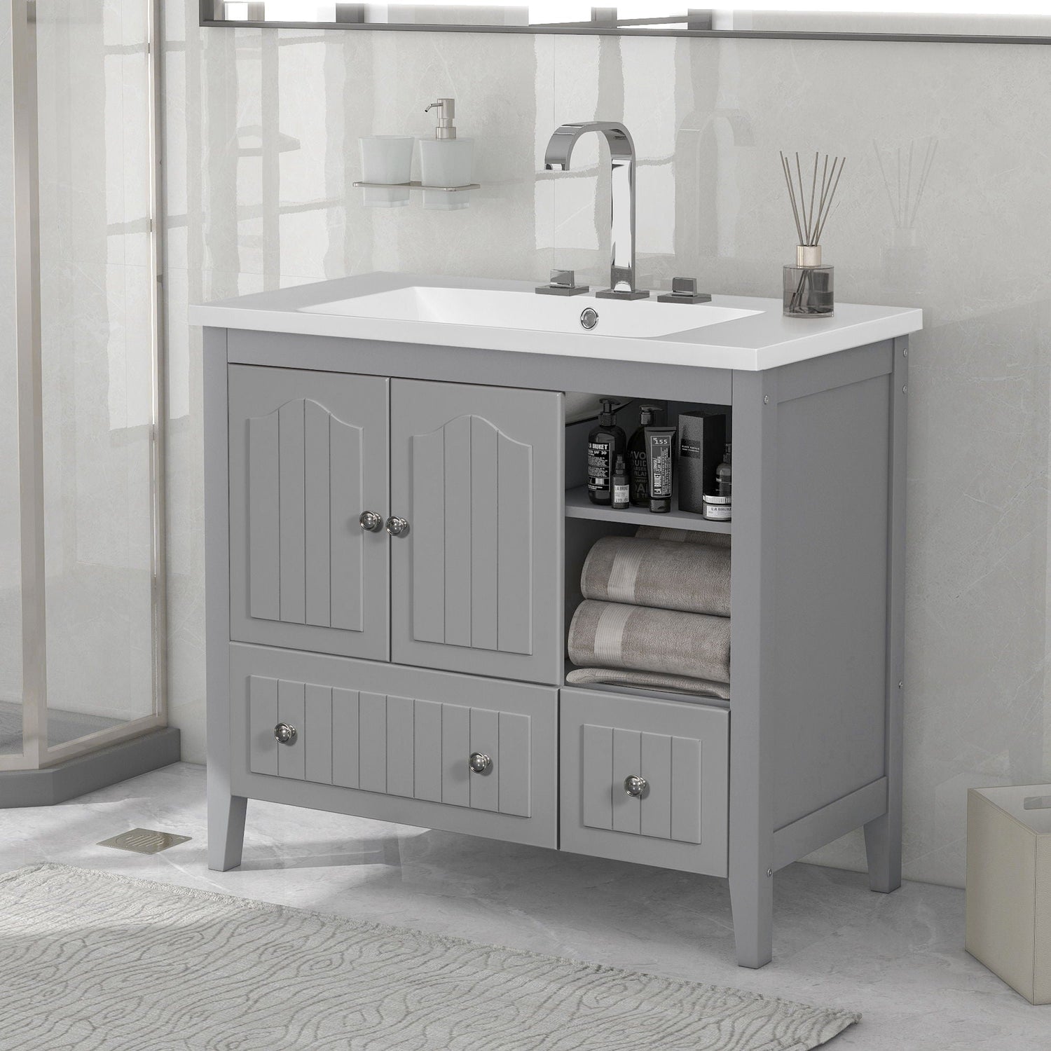Bathroom Vanity With Ceramic Basin, Bathroom Storage Cabinet With Two Doors And Drawers, Solid Frame, Metal Handles by Couch.com - Gray is backordered and will ship as soon as it is back in stock.