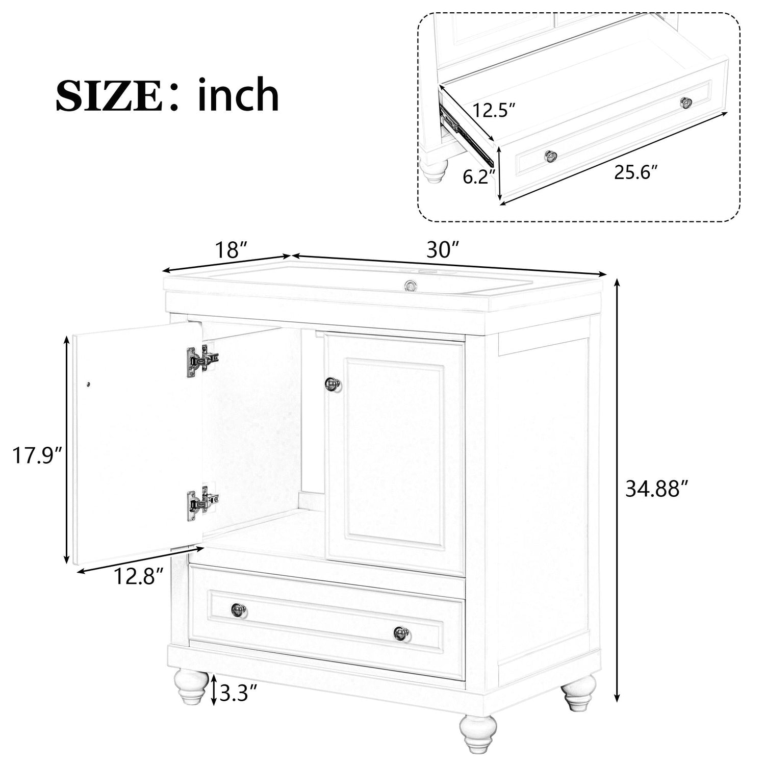 Bathroom Vanity With Sink, Combo, Cabinet With Doors And Drawer, Solid Frame And MDF Board - White