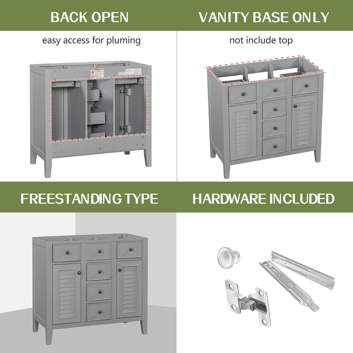 Bathroom Vanity Without Sink, Cabinet Base Only, Two Cabinets And Five Drawers, Solid Wood Frame - Gray