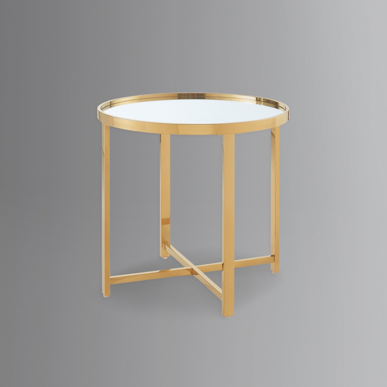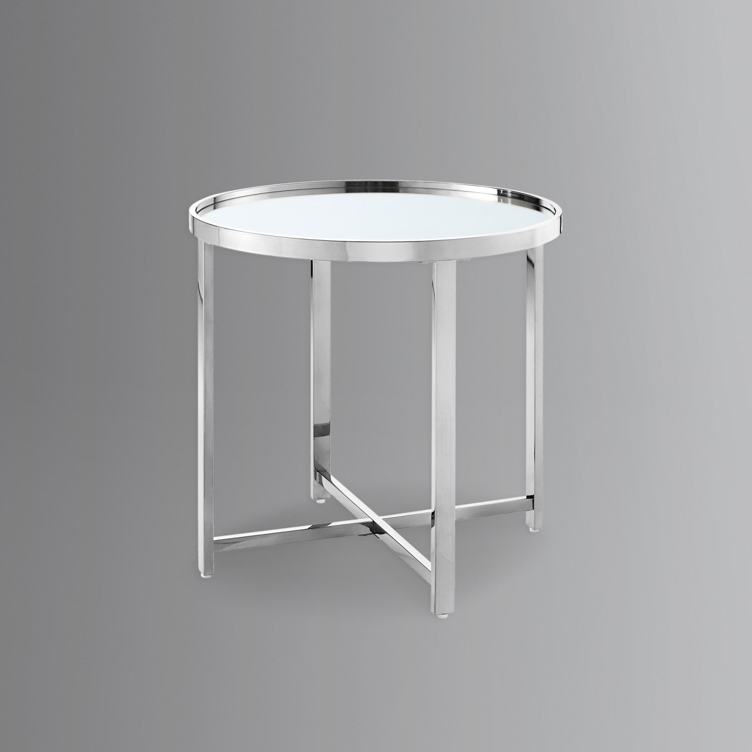 - ATTRIBUTES: Mirrored Top, Cross Legs Design, Open Geometric Base