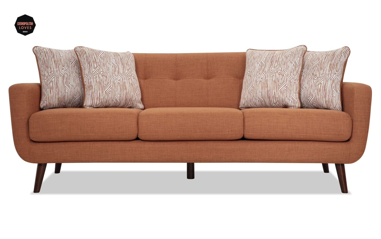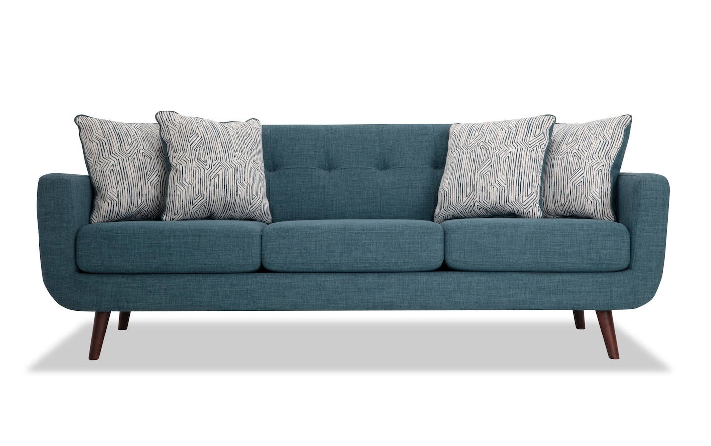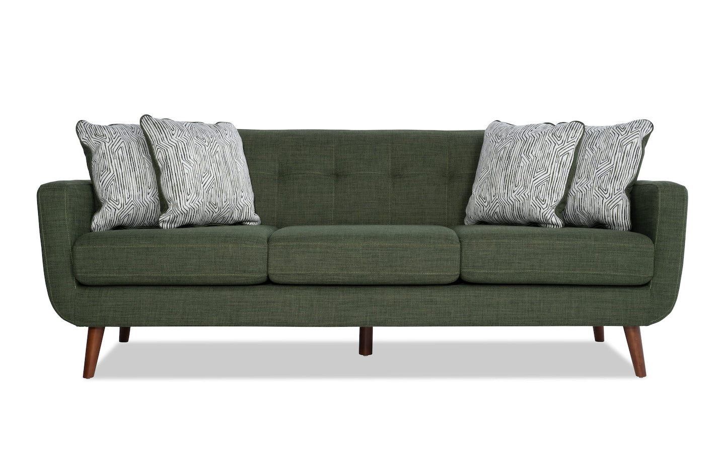 Add a touch of mid-century modern charm to your living space with the Bettie 86'' Sofa. Crafted with a sleek tufted back, understated track arms, and slender, slightly flared wooden legs, this sofa is both stylish and functional. Upholstered in durable 100% polyester fabric, it’s designed to stand the test of time while providing exceptional comfort with Bob-O-Pedic® Memory Foam seating. Complete with four trendy accent pillows, the Bettie Sofa offers the perfect blend of contemporary design and everyday practicality.