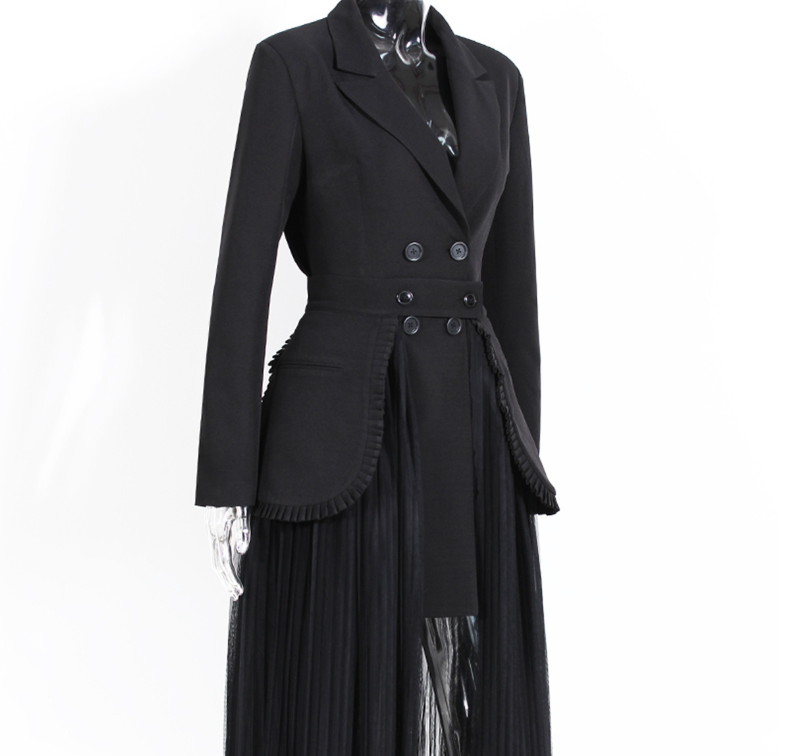 Featuring a solid black color, this outfit is perfect for any occasion—be it a professional meeting or an elegant evening out. The long skirt adds a touch of sophistication, while the high-temperature shaping ensures a perfect fit that flatters your silhouette.