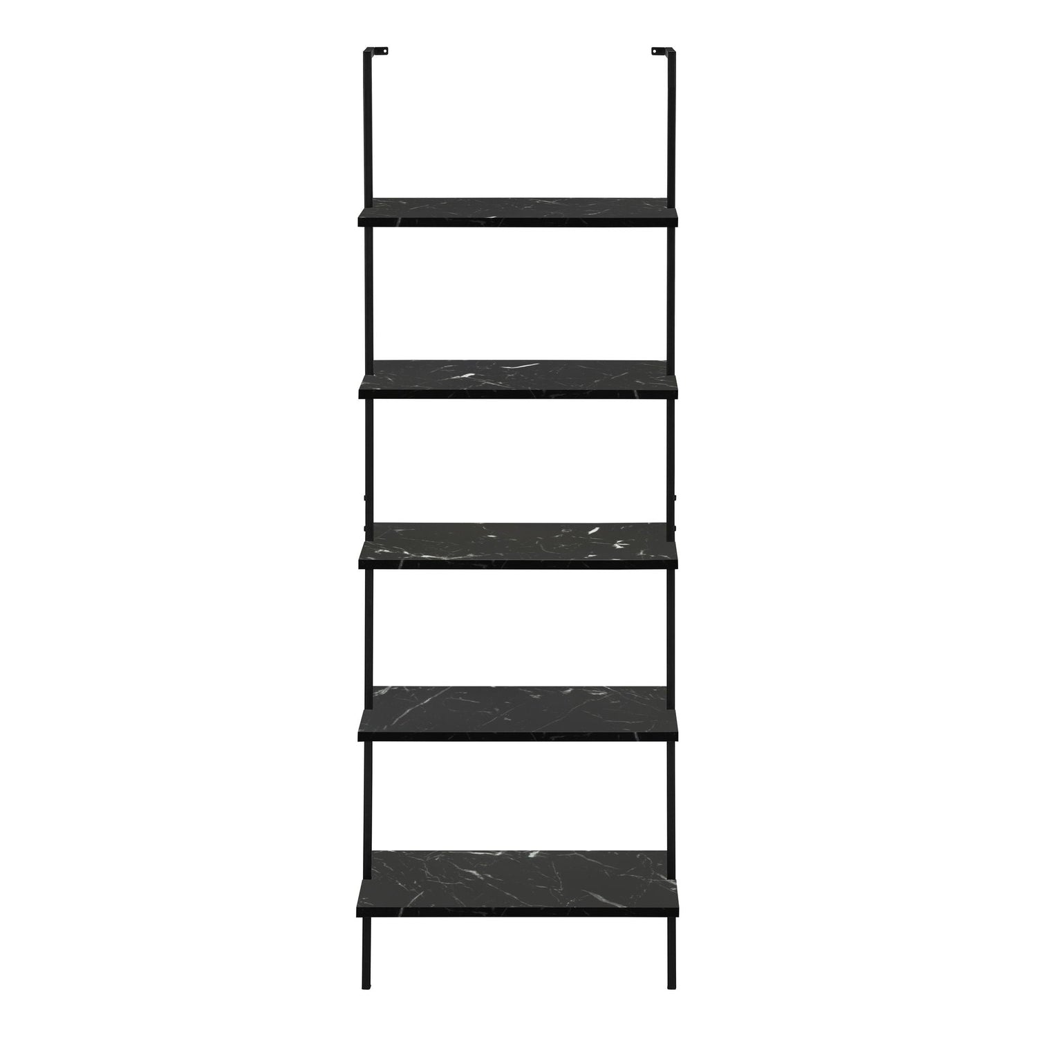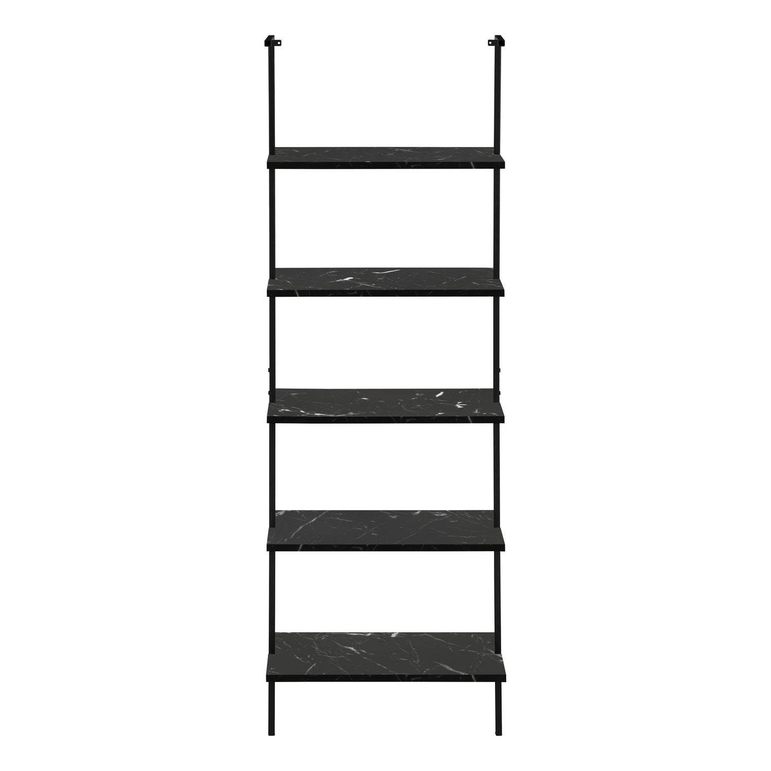 Bookshelf, Bookcase, Etagere, Ladder, 5 Tier, For Office, Marble Look Contemporary & Modern - Black