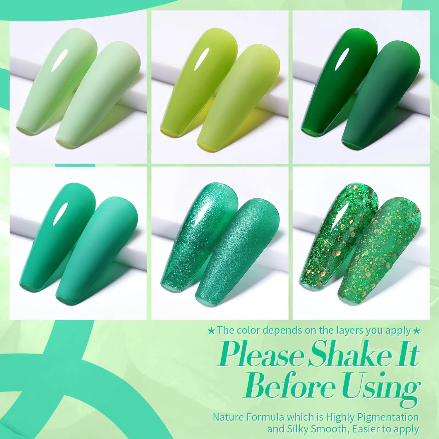 Born Pretty Green Gel Nail Polish, Christmas Carnival Evergreen Gel Nail Polish Set, Glitter Green Sparkle Gel Polish Nail Art Varnish Manicure Collection St. Patrick's Day 6PCS