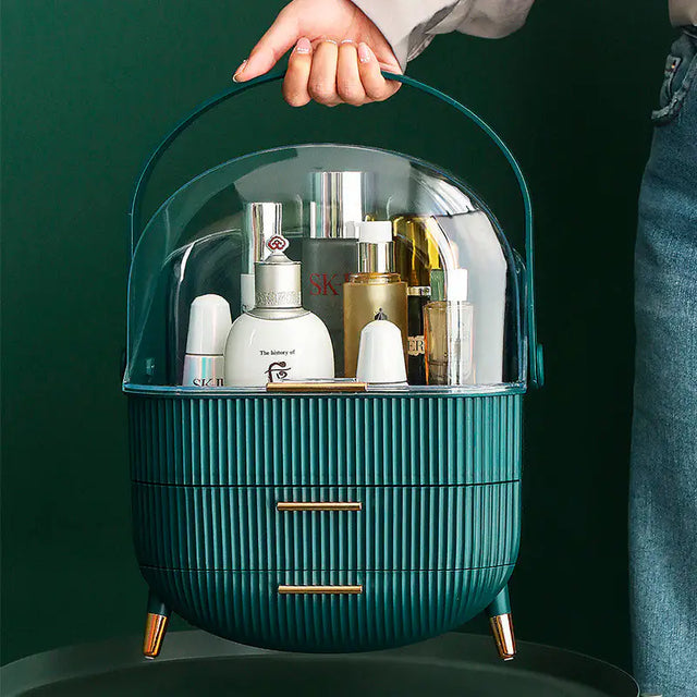The spacious main compartment features a protective lid, allowing you to store taller items securely, while the drawers provide a convenient spot for smaller products. No more worrying about scratches or damages - this organizer ensures that your beloved items stay safe and well-organized at all times.