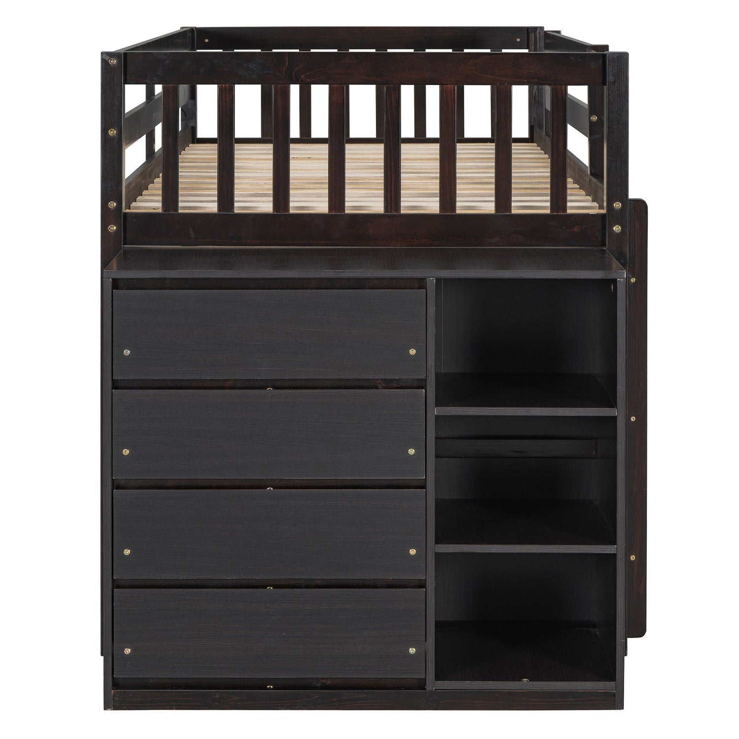 Twin Over Twin Classic Bunk Bed With 4 Drawers And 3 Shelves - Espresso