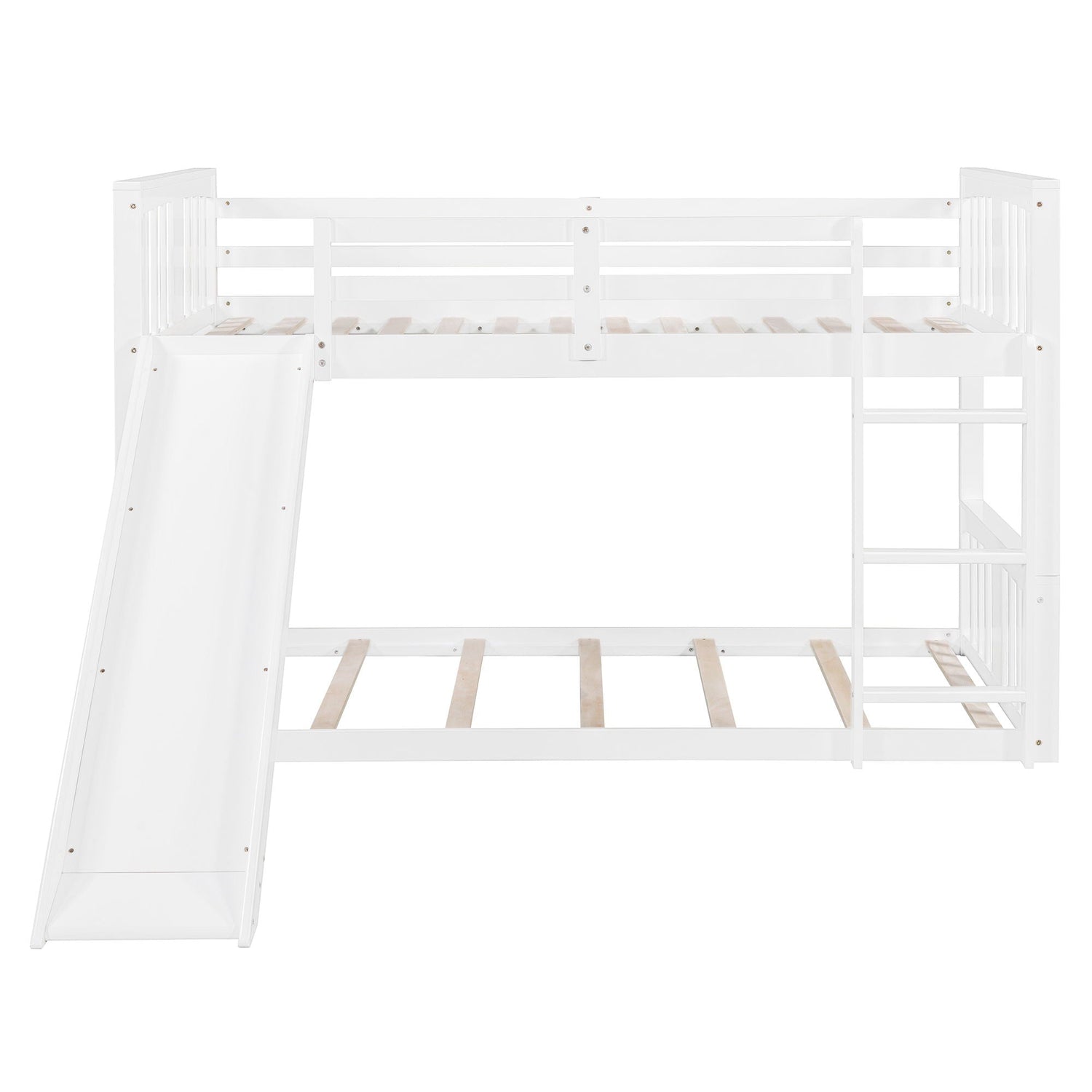 Twin Over Twin Classic Bunk Bed With Slide And Ladder - White