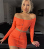 Buttoned Shoulder Off Long Sleeve Skirt Set - S / Orange is backordered and will ship as soon as it is back in stock.