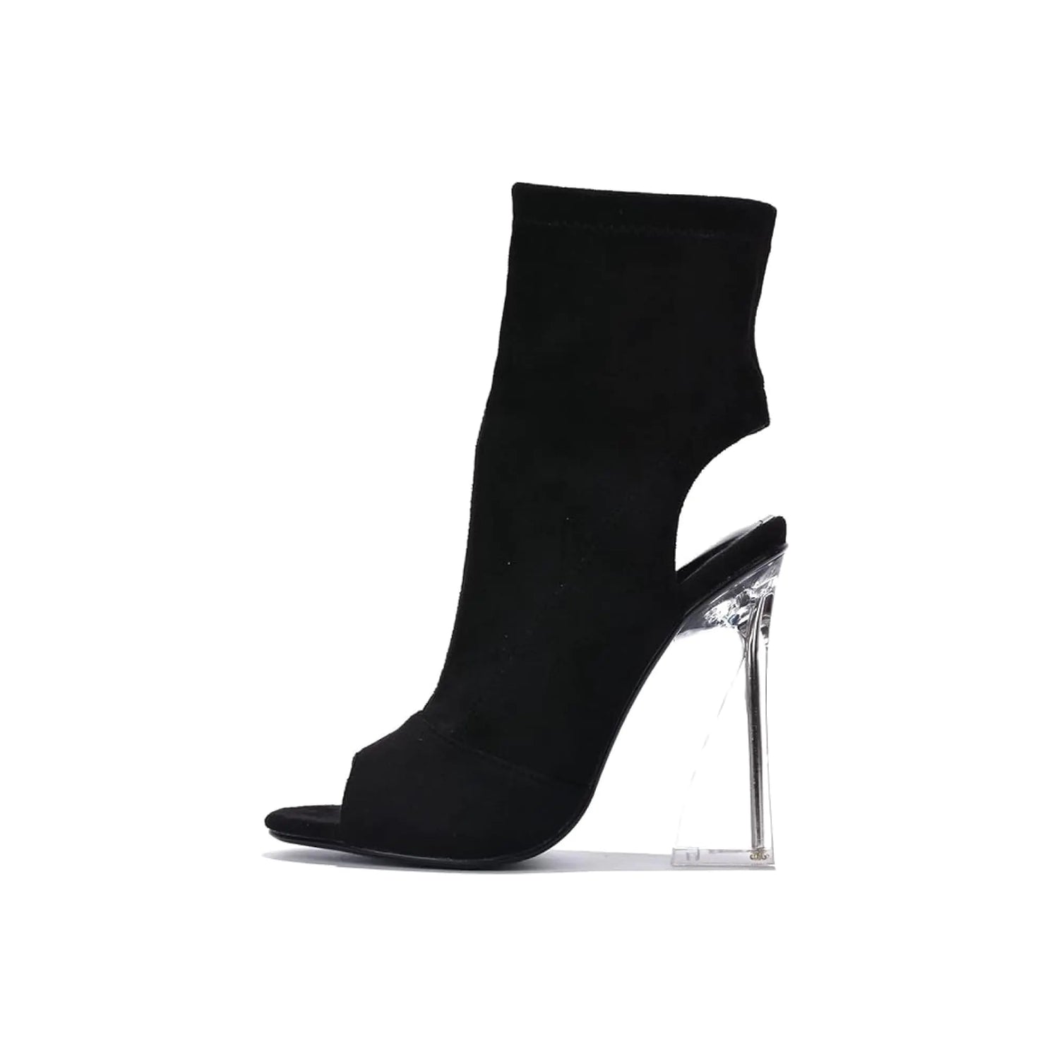 Cape Robbin Cally Sexy Clear Block Heels for Women - Faux Suede Round Peep Toe Ankle Booties Women with Zipper - Stylish Womens Heels - Clear High Heels for Women - Black Size 8.5 - Black / 8.5 is backordered and will ship as soon as it is back in stock.