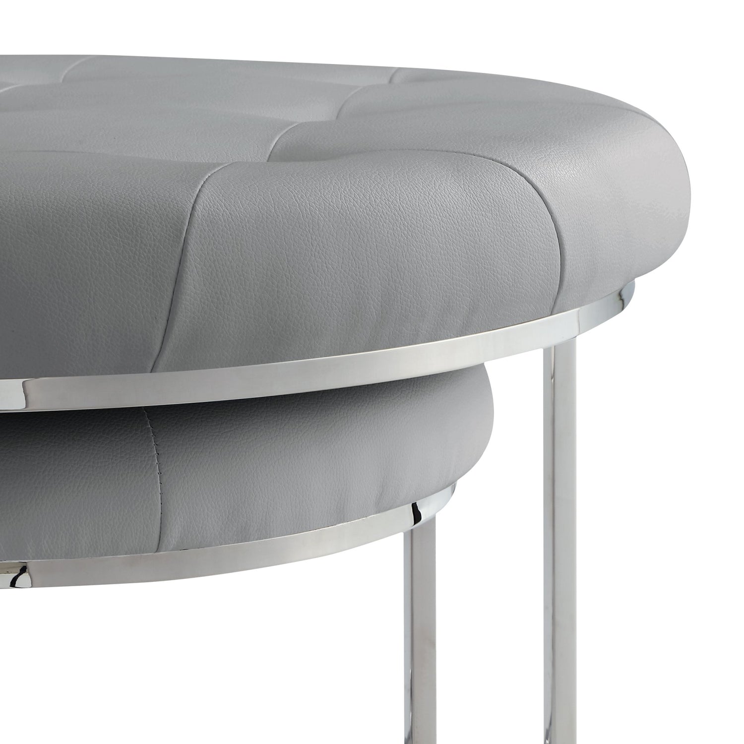 - STURDY CONSTRUCTION – This beautiful set of cocktail ottomans is made of stainless steel sturdy construction that guarantees years of enjoyment of this beautiful room decor. With a whimsical base round silhouette, it speaks to an effortless design concept. Perfect for a contemporary space, these ottomans deliver personality and sophistication